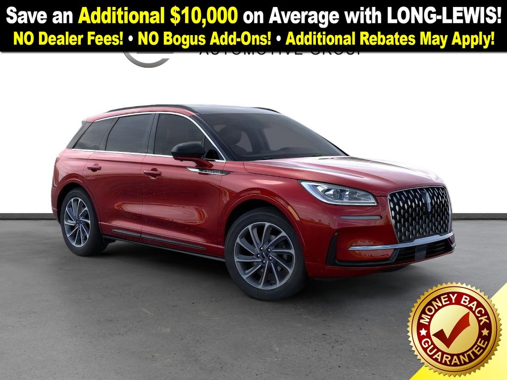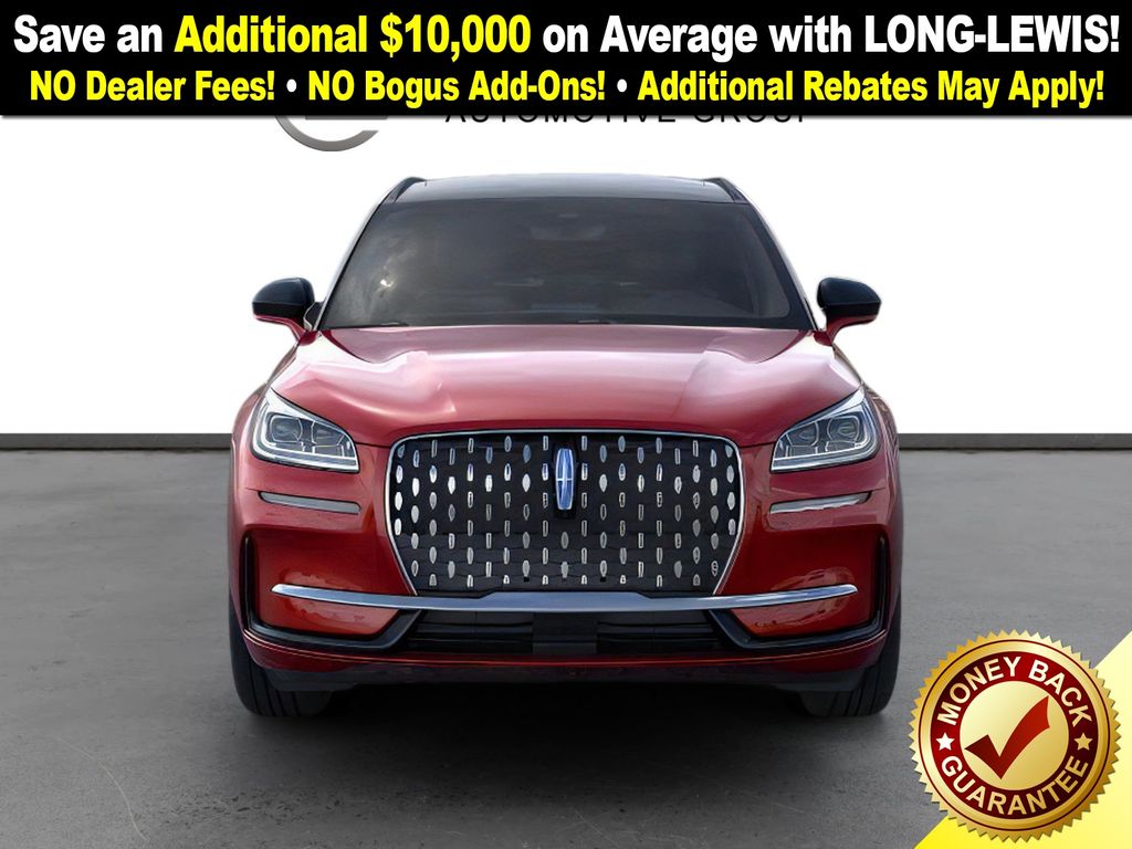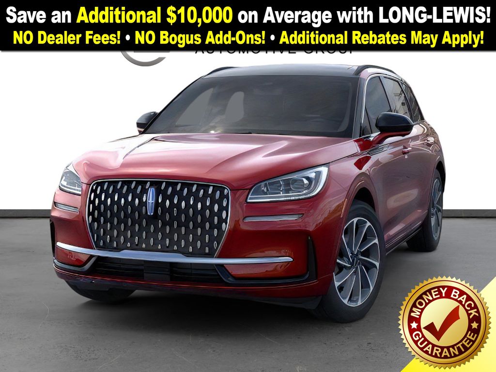 Red Carpet Metallic Tinted Clearcoat 2026 Lincoln Corsair Plug-In Hybrid Grand Touring FCT AWD eCVT 2.5L i-VCT 2.5L i-VCT, 19" Bright Machined Aluminum Wheels, 4-Wheel Disc Brakes, 9 Speakers, ABS brakes, Adaptive suspension, Air Conditioning, Alexa Built-In, Alloy wheels, AM/FM radio: SiriusXM with 360L, Apple CarPlay/Android Auto, Auto High-beam Headlights, Auto-dimming Rear-View mirror, Automatic temperature control, Brake assist, Bumpers: body-color, Compass, Delay-off headlights, Driver door bin, Driver vanity mirror, Dual front impact airbags, Dual front side impact airbags, Electronic Stability Control, Emergency communication system: 911 Assist, Exterior Parking Camera Rear, Four wheel independent suspension, Front anti-roll bar, Front Bucket Seats, Front Center Armrest, Front dual zone A/C, Front reading lights, Fully automatic headlights, Heated door mirrors, Heated front seats, Illuminated entry, Knee airbag, Leather steering wheel, Low tire pressure warning, Memory seat, Navigation system: Connected Navigation (4-year trial), Occupant sensing airbag, Outside temperature display, Overhead airbag, Overhead console, Panic alarm, Passenger door bin, Passenger vanity mirror, Power door mirrors, Power driver seat, Power Liftgate, Power moonroof: Panoramic Vista Roof, Power passenger seat, Power steering, Power windows, Premium Leather-Trimmed Heated Captain's Chairs, Radio data system, Radio: Lincoln Premium Audio System w/MP3, Rear anti-roll bar, Rear Parking Sensors, Rear reading lights, Rear seat center armrest, Rear window defroster, Rear window wiper, Remote keyless entry, Security system, SiriusXM w/360L Radio, Speed control, Speed-sensing steering, Speed-Sensitive Wipers, Split folding rear seat, Spoiler, Steering wheel mounted A/C controls, Steering wheel mounted audio controls, SYNC 4 Communications & Entertainment System, Tachometer, Telescoping steering wheel, Tilt steering wheel, Traction control, Trip computer, Variably intermittent wipers, 2.5L i-VCT.