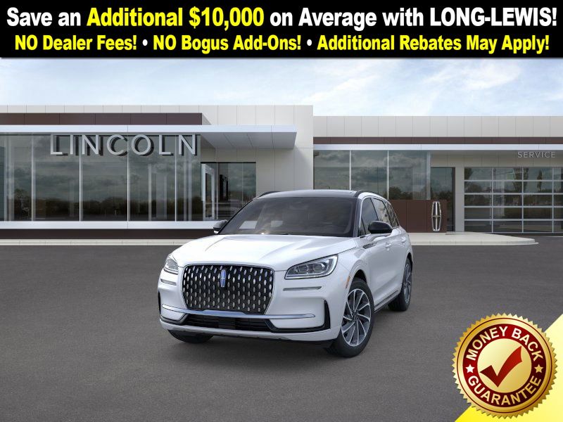 Crystal White Metallic Clearcoat 2026 Lincoln Corsair Plug-In Hybrid Grand Touring FCT AWD eCVT 2.5L i-VCT 2.5L i-VCT, 19" Bright Machined Aluminum Wheels, 4-Wheel Disc Brakes, 9 Speakers, ABS brakes, Adaptive suspension, Air Conditioning, Alexa Built-In, Alloy wheels, AM/FM radio: SiriusXM with 360L, Apple CarPlay/Android Auto, Auto High-beam Headlights, Auto-dimming Rear-View mirror, Automatic temperature control, Brake assist, Bumpers: body-color, Compass, Delay-off headlights, Driver door bin, Driver vanity mirror, Dual front impact airbags, Dual front side impact airbags, Electronic Stability Control, Emergency communication system: 911 Assist, Exterior Parking Camera Rear, Four wheel independent suspension, Front anti-roll bar, Front Bucket Seats, Front Center Armrest, Front dual zone A/C, Front reading lights, Fully automatic headlights, Heated door mirrors, Heated front seats, Illuminated entry, Knee airbag, Leather steering wheel, Low tire pressure warning, Memory seat, Navigation system: Connected Navigation (4-year trial), Occupant sensing airbag, Outside temperature display, Overhead airbag, Overhead console, Panic alarm, Passenger door bin, Passenger vanity mirror, Power door mirrors, Power driver seat, Power Liftgate, Power moonroof: Panoramic Vista Roof, Power passenger seat, Power steering, Power windows, Premium Leather-Trimmed Heated Captain's Chairs, Radio data system, Radio: Lincoln Premium Audio System w/MP3, Rear anti-roll bar, Rear Parking Sensors, Rear reading lights, Rear seat center armrest, Rear window defroster, Rear window wiper, Remote keyless entry, Security system, SiriusXM w/360L Radio, Speed control, Speed-sensing steering, Speed-Sensitive Wipers, Split folding rear seat, Spoiler, Steering wheel mounted A/C controls, Steering wheel mounted audio controls, SYNC 4 Communications & Entertainment System, Tachometer, Telescoping steering wheel, Tilt steering wheel, Traction control, Trip computer, Variably intermittent wipers, 2.5L i-VCT.