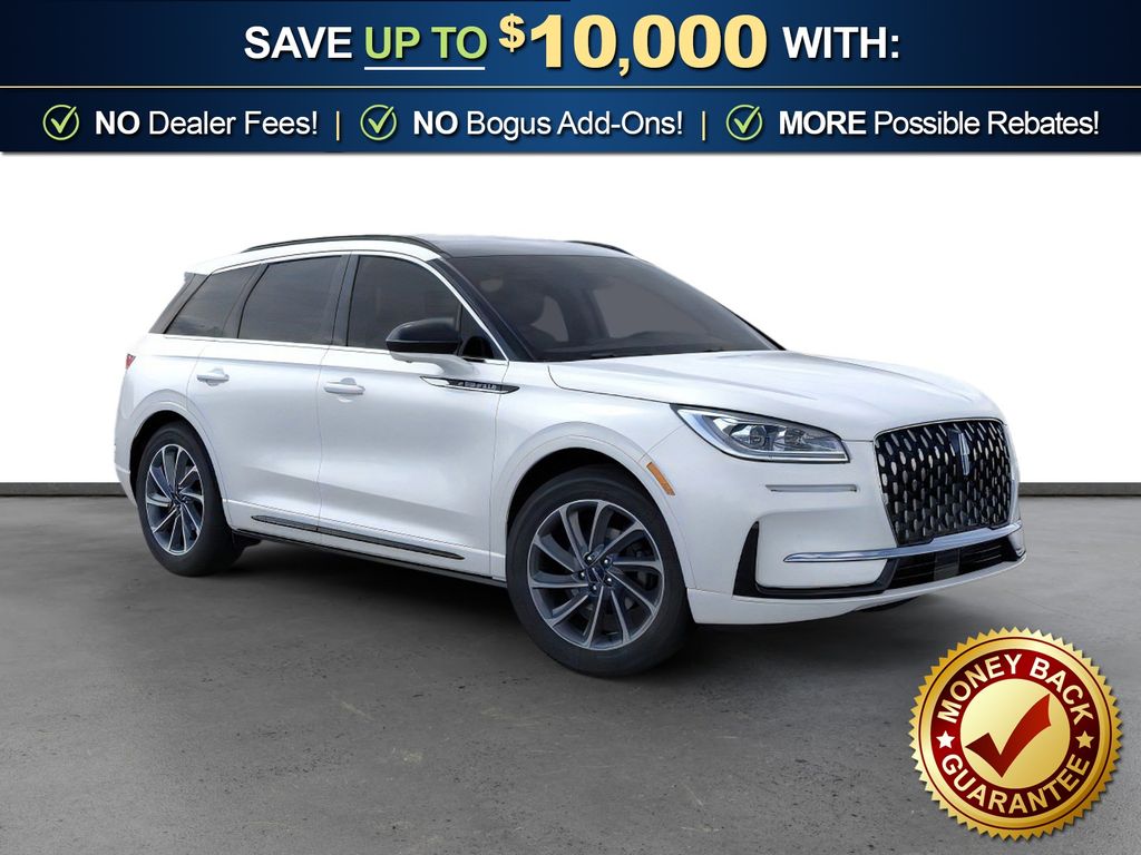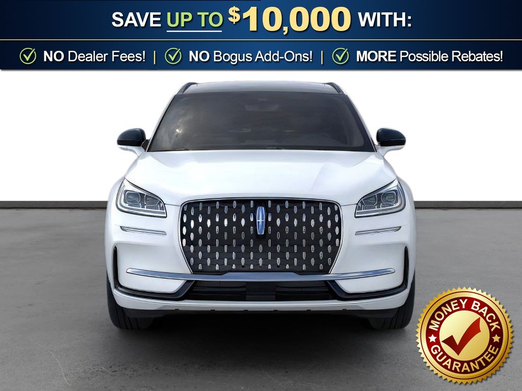 Pristine White Metallic Tri-Coat 2026 Lincoln Corsair Plug-In Hybrid Grand Touring FCT AWD eCVT 2.5L i-VCT 2.5L i-VCT, 19" Bright Machined Aluminum Wheels, 4-Wheel Disc Brakes, 9 Speakers, ABS brakes, Adaptive suspension, Air Conditioning, Alexa Built-In, Alloy wheels, AM/FM radio: SiriusXM with 360L, Apple CarPlay/Android Auto, Auto High-beam Headlights, Auto-dimming Rear-View mirror, Automatic temperature control, Brake assist, Bumpers: body-color, Compass, Delay-off headlights, Driver door bin, Driver vanity mirror, Dual front impact airbags, Dual front side impact airbags, Electronic Stability Control, Emergency communication system: 911 Assist, Exterior Parking Camera Rear, Four wheel independent suspension, Front anti-roll bar, Front Bucket Seats, Front Center Armrest, Front dual zone A/C, Front reading lights, Fully automatic headlights, Heated door mirrors, Heated front seats, Illuminated entry, Knee airbag, Leather steering wheel, Low tire pressure warning, Memory seat, Navigation system: Connected Navigation (4-year trial), Occupant sensing airbag, Outside temperature display, Overhead airbag, Overhead console, Panic alarm, Passenger door bin, Passenger vanity mirror, Power door mirrors, Power driver seat, Power Liftgate, Power moonroof: Panoramic Vista Roof, Power passenger seat, Power steering, Power windows, Premium Leather-Trimmed Heated Captain's Chairs, Radio data system, Radio: Lincoln Premium Audio System w/MP3, Rear anti-roll bar, Rear Parking Sensors, Rear reading lights, Rear seat center armrest, Rear window defroster, Rear window wiper, Remote keyless entry, Security system, SiriusXM w/360L Radio, Speed control, Speed-sensing steering, Speed-Sensitive Wipers, Split folding rear seat, Spoiler, Star Light Metallic Applique, Steering wheel mounted A/C controls, Steering wheel mounted audio controls, SYNC 4 Communications & Entertainment System, Tachometer, Telescoping steering wheel, Tilt steering wheel, Traction control, Trip computer, Variably intermittent wipers, 2.5L i-VCT.