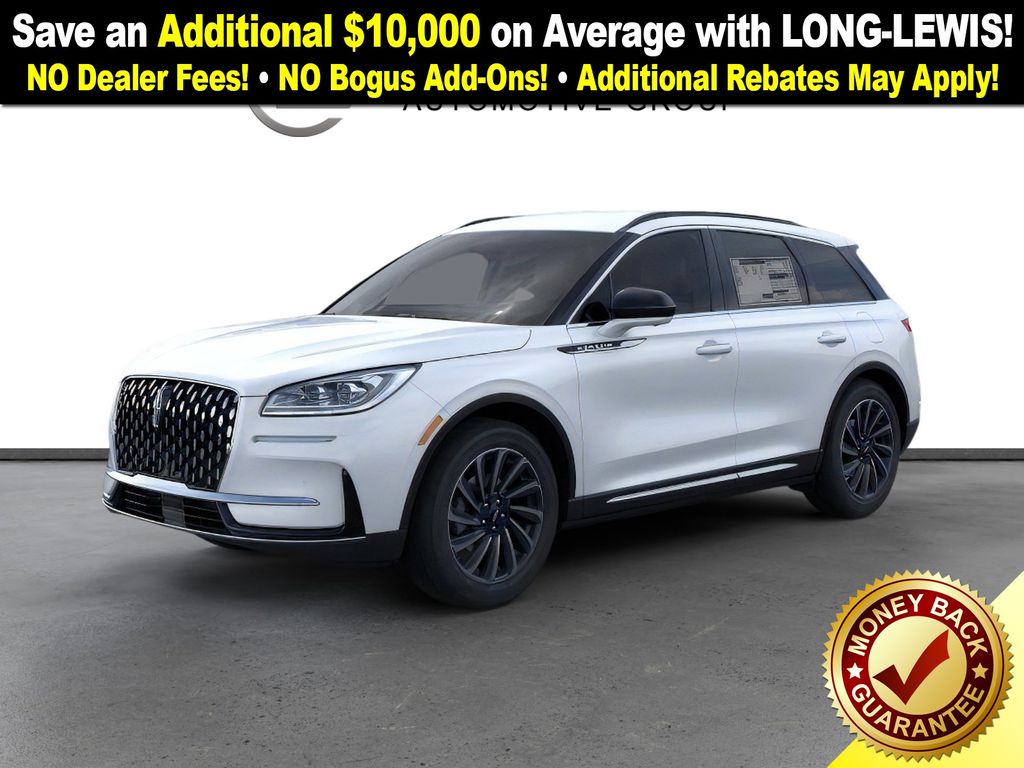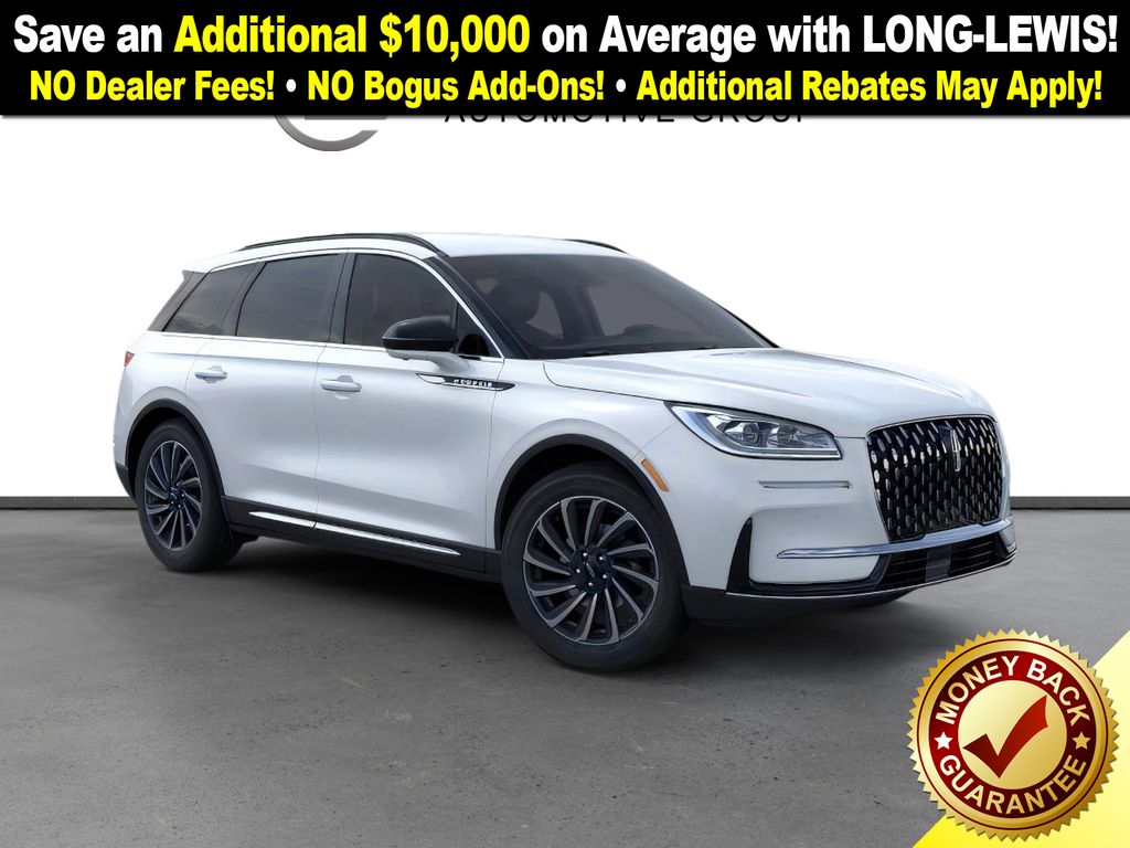 Dealer Discount of $1,705 off MSRP Crystal White Metallic Clearcoat 2026 Lincoln Corsair Reserve FCT FWD 8-Speed Automatic 2.0L I4 19" Bright Machined Aluminum Wheels, 4-Wheel Disc Brakes, 9 Speakers, ABS brakes, Air Conditioning, Alexa Built-In, Alloy wheels, AM/FM radio: SiriusXM with 360L, Apple CarPlay/Android Auto, Auto High-beam Headlights, Auto-dimming Rear-View mirror, Automatic temperature control, Brake assist, Bumpers: body-color, Compass, Delay-off headlights, Driver door bin, Driver vanity mirror, Dual front impact airbags, Dual front side impact airbags, Electronic Stability Control, Emergency communication system: 911 Assist, Exterior Parking Camera Rear, Four wheel independent suspension, Front anti-roll bar, Front Bucket Seats, Front Center Armrest, Front dual zone A/C, Front reading lights, Fully automatic headlights, Heated door mirrors, Heated front seats, Illuminated entry, Knee airbag, Leather steering wheel, Low tire pressure warning, Memory seat, Navigation system: Connected Navigation (4-year trial), Occupant sensing airbag, Outside temperature display, Overhead airbag, Overhead console, Panic alarm, Passenger door bin, Passenger vanity mirror, Power door mirrors, Power driver seat, Power Liftgate, Power passenger seat, Power steering, Power windows, Premium Leather-Trimmed Heated Captain's Chairs, Radio data system, Radio: Lincoln Premium Audio System w/MP3, Rear anti-roll bar, Rear Parking Sensors, Rear reading lights, Rear seat center armrest, Rear window defroster, Rear window wiper, Remote keyless entry, Security system, SiriusXM w/360L Radio, Speed control, Speed-sensing steering, Speed-Sensitive Wipers, Split folding rear seat, Spoiler, Steering wheel mounted A/C controls, Steering wheel mounted audio controls, SYNC 4, Tachometer, Telescoping steering wheel, Tilt steering wheel, Traction control, Trip computer, Variably intermittent wipers.