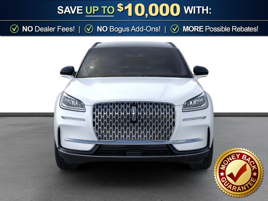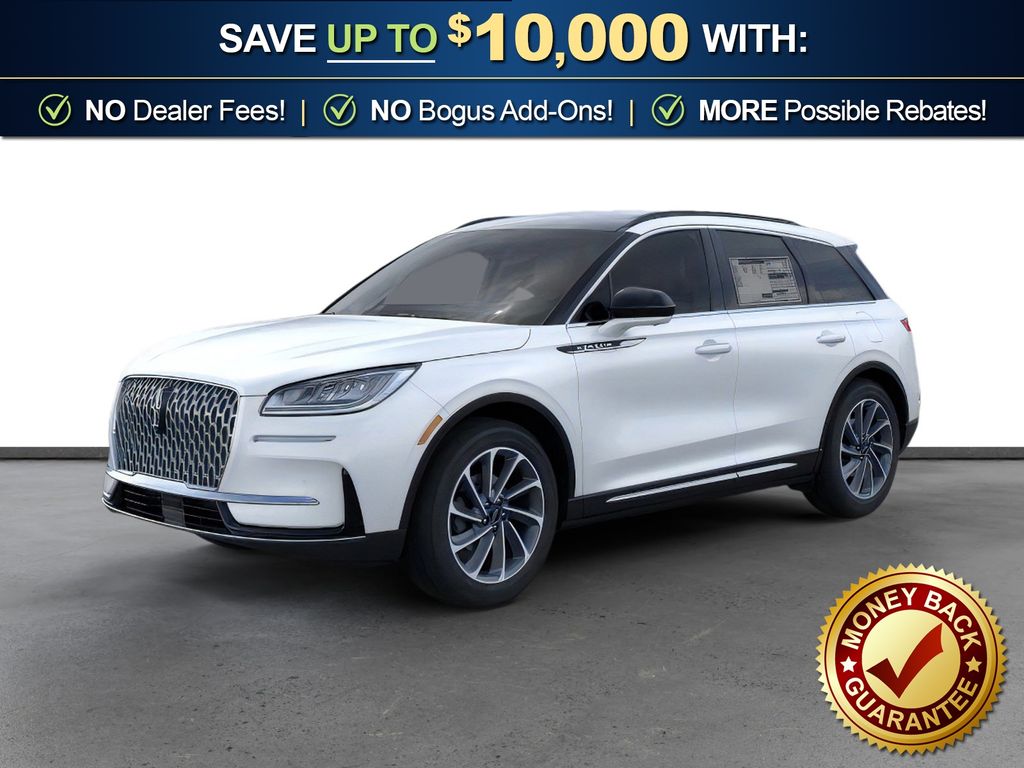 Pristine White Metallic Tri-Coat 2026 Lincoln Corsair Premiere NLT FWD 8-Speed Automatic 2.0L I4 19" Bright Machined Aluminum Wheels, 4-Wheel Disc Brakes, 9 Speakers, ABS brakes, Air Conditioning, Alexa Built-In, Alloy wheels, AM/FM radio: SiriusXM with 360L, Apple CarPlay/Android Auto, Auto High-beam Headlights, Auto-dimming Rear-View mirror, Automatic temperature control, Brake assist, Bumpers: body-color, Compass, Delay-off headlights, Driver door bin, Driver vanity mirror, Dual front impact airbags, Dual front side impact airbags, Electronic Stability Control, Emergency communication system: 911 Assist, Exterior Parking Camera Rear, Four wheel independent suspension, Front anti-roll bar, Front Bucket Seats, Front Center Armrest, Front dual zone A/C, Front reading lights, Fully automatic headlights, Heated door mirrors, Heated front seats, Illuminated entry, Knee airbag, Leather steering wheel, Lincoln Soft Touch Heated Front Captain's Chairs, Low tire pressure warning, Memory seat, Micro-Perf Lincoln Soft Touch Captain's Chairs, Navigation system: Connected Navigation (4-year trial), Occupant sensing airbag, Outside temperature display, Overhead airbag, Overhead console, Panic alarm, Panoramic Vista Roof w/Power Shade, Passenger door bin, Passenger vanity mirror, Power door mirrors, Power driver seat, Power Liftgate, Power passenger seat, Power steering, Power windows, Radio data system, Radio: Lincoln Premium Audio System w/MP3, Rear anti-roll bar, Rear Parking Sensors, Rear reading lights, Rear seat center armrest, Rear window defroster, Rear window wiper, Remote keyless entry, Security system, SiriusXM w/360L Radio, Speed control, Speed-sensing steering, Speed-Sensitive Wipers, Split folding rear seat, Spoiler, Steering wheel mounted A/C controls, Steering wheel mounted audio controls, SYNC 4, Tachometer, Telescoping steering wheel, Tilt steering wheel, Traction control, Trip computer, Variably intermittent wipers, Wheels: 18" Warm Painted Alloy.