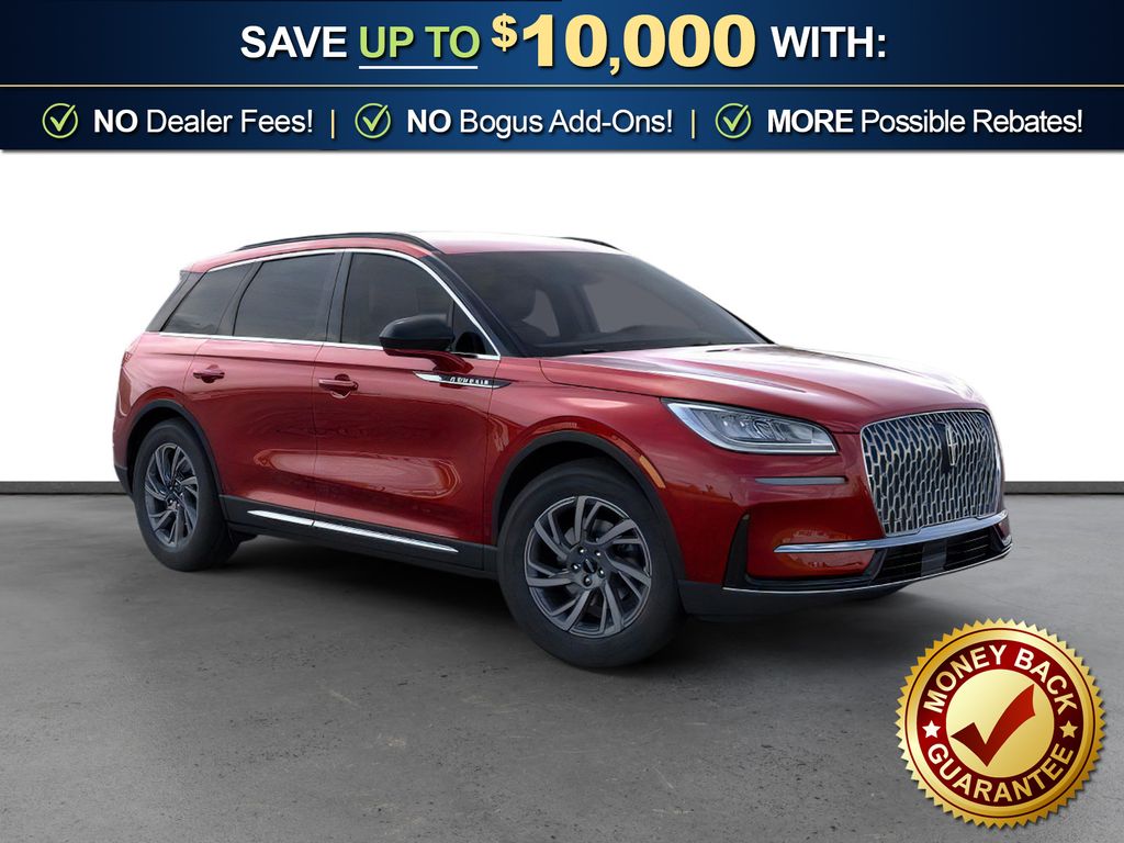 Red Carpet Metallic Tinted Clearcoat 2026 Lincoln Corsair Premiere FCT FWD 8-Speed Automatic 2.0L I4 18" Bright Machined Aluminum Wheels, 4-Wheel Disc Brakes, 9 Speakers, ABS brakes, Air Conditioning, Alexa Built-In, Alloy wheels, AM/FM radio: SiriusXM with 360L, Apple CarPlay/Android Auto, Auto High-beam Headlights, Auto-dimming Rear-View mirror, Automatic temperature control, Brake assist, Bumpers: body-color, Compass, Delay-off headlights, Driver door bin, Driver vanity mirror, Dual front impact airbags, Dual front side impact airbags, Electronic Stability Control, Emergency communication system: 911 Assist, Exterior Parking Camera Rear, Four wheel independent suspension, Front anti-roll bar, Front Bucket Seats, Front Center Armrest, Front dual zone A/C, Front reading lights, Fully automatic headlights, Heated door mirrors, Heated front seats, Illuminated entry, Knee airbag, Leather steering wheel, Lincoln Soft Touch Heated Front Captain's Chairs, Low tire pressure warning, Memory seat, Navigation system: Connected Navigation (4-year trial), Occupant sensing airbag, Outside temperature display, Overhead airbag, Overhead console, Panic alarm, Passenger door bin, Passenger vanity mirror, Power door mirrors, Power driver seat, Power Liftgate, Power passenger seat, Power steering, Power windows, Radio data system, Radio: Lincoln Premium Audio System w/MP3, Rear anti-roll bar, Rear Parking Sensors, Rear reading lights, Rear seat center armrest, Rear window defroster, Rear window wiper, Remote keyless entry, Security system, SiriusXM w/360L Radio, Speed control, Speed-sensing steering, Speed-Sensitive Wipers, Split folding rear seat, Spoiler, Steering wheel mounted A/C controls, Steering wheel mounted audio controls, SYNC 4, Tachometer, Telescoping steering wheel, Tilt steering wheel, Traction control, Trip computer, Variably intermittent wipers, Wheels: 18" Warm Painted Alloy.