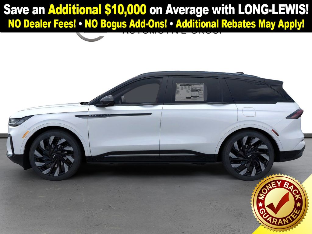 White Platinum Metallic Tri-Coat 2026 Lincoln Nautilus Reserve NLT AWD CVT 2.0L GTDI FHEV 2.0L GTDI FHEV, 10 Speakers, 110V Power Converter, 4-Wheel Disc Brakes, ABS brakes, Adaptive suspension, Air Conditioning, Alloy wheels, AM/FM radio: SiriusXM with 360L, Apple CarPlay/Android Auto, Auto Air Refresh, Auto High-beam Headlights, Auto tilt-away steering wheel, Auto-dimming Rear-View mirror, Automatic temperature control, Black Exterior Elements, BlueCruise Equipped (4-Years Included), Body-Color Exterior Elements, Brake assist, Bumpers: body-color, Compass, Delay-off headlights, Digital Scent, Driver door bin, Driver vanity mirror, Dual front impact airbags, Dual front side impact airbags, Electronic Stability Control, Emergency communication system: 911 Assist, Exterior Parking Camera Rear, Four wheel independent suspension, Front anti-roll bar, Front Bucket Seats, Front Center Armrest w/Storage, Front dual zone A/C, Front reading lights, Fully automatic headlights, Garage door transmitter, Hands-Free Power Liftgate, Heated door mirrors, Heated front seats, Heated steering wheel, Illuminated entry, Jet Appearance Package, Knee airbag, Leather steering wheel, Lincoln Connectivity Package, Lincoln Digital Experience, Low tire pressure warning, Memory seat, Navigation System, Occupant sensing airbag, Outside temperature display, Overhead airbag, Overhead console, Panic alarm, Passenger door bin, Passenger vanity mirror, Power door mirrors, Power driver seat, Power Liftgate, Power passenger seat, Power steering, Power windows, Premium Leather Trimmed Captain's Chairs, Radio data system, Radio: AM/FM Revel Audio System, Rain sensing wipers, Rear anti-roll bar, Rear Heated Seats with Switch Control, Rear reading lights, Rear seat center armrest, Rear window defroster, Rear window wiper, Remote keyless entry, Security system, SiriusXM with 360L, Speed control, Speed-sensing steering, Speed-Sensitive Wipers, Split folding rear seat, Spoiler, Steering wheel memory, Steering wheel mounted audio controls, Tachometer, Telescoping steering wheel, Tilt steering wheel, Traction control, Trip computer, Turn signal indicator mirrors, Variably intermittent wipers, Ventilated front seats, Wheels: : 22" Satin Dark Luster Aluminum, 2.0L GTDI FHEV.
