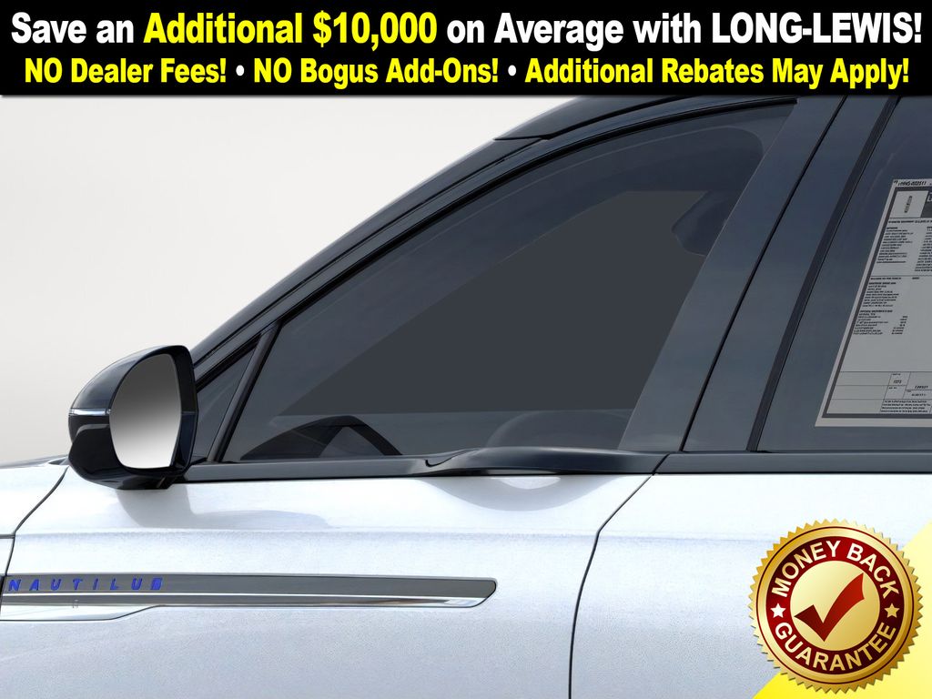 White Platinum Metallic Tri-Coat 2026 Lincoln Nautilus Reserve NLT AWD CVT 2.0L GTDI FHEV 2.0L GTDI FHEV, 10 Speakers, 110V Power Converter, 4-Wheel Disc Brakes, ABS brakes, Adaptive suspension, Air Conditioning, Alloy wheels, AM/FM radio: SiriusXM with 360L, Apple CarPlay/Android Auto, Auto Air Refresh, Auto High-beam Headlights, Auto tilt-away steering wheel, Auto-dimming Rear-View mirror, Automatic temperature control, BlueCruise Equipped (4-Years Included), Brake assist, Bumpers: body-color, Compass, Delay-off headlights, Digital Scent, Driver door bin, Driver vanity mirror, Dual front impact airbags, Dual front side impact airbags, Electronic Stability Control, Emergency communication system: 911 Assist, Exterior Parking Camera Rear, Four wheel independent suspension, Front anti-roll bar, Front Bucket Seats, Front Center Armrest w/Storage, Front dual zone A/C, Front reading lights, Fully automatic headlights, Garage door transmitter, Hands-Free Power Liftgate, Heated door mirrors, Heated front seats, Heated steering wheel, Illuminated entry, Knee airbag, Leather steering wheel, Lincoln Connectivity Package, Lincoln Digital Experience, Low tire pressure warning, Memory seat, Navigation System, Occupant sensing airbag, Outside temperature display, Overhead airbag, Overhead console, Panic alarm, Passenger door bin, Passenger vanity mirror, Power door mirrors, Power driver seat, Power Liftgate, Power passenger seat, Power steering, Power windows, Premium Leather Trimmed Captain's Chairs, Radio data system, Radio: AM/FM Revel Audio System, Rain sensing wipers, Rear anti-roll bar, Rear Heated Seats with Switch Control, Rear reading lights, Rear seat center armrest, Rear window defroster, Rear window wiper, Remote keyless entry, Security system, SiriusXM with 360L, Speed control, Speed-sensing steering, Speed-Sensitive Wipers, Split folding rear seat, Spoiler, Steering wheel memory, Steering wheel mounted audio controls, Tachometer, Telescoping steering wheel, Tilt steering wheel, Traction control, Trip computer, Turn signal indicator mirrors, Variably intermittent wipers, Ventilated front seats, Wheels: 21" Bright Machined Aluminum, 2.0L GTDI FHEV.