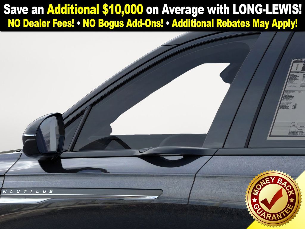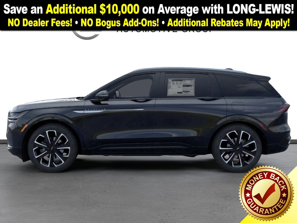 Infinite Black Metallic Clearcoat 2026 Lincoln Nautilus Reserve NLT AWD 8-Speed Automatic 2.0L GTDi 10 Speakers, 110V Power Converter, 4-Wheel Disc Brakes, ABS brakes, Adaptive suspension, Air Conditioning, Alloy wheels, AM/FM radio: SiriusXM with 360L, Apple CarPlay/Android Auto, Auto Air Refresh, Auto High-beam Headlights, Auto tilt-away steering wheel, Auto-dimming Rear-View mirror, Automatic temperature control, BlueCruise Equipped (4-Years Included), Brake assist, Bumpers: body-color, Compass, Delay-off headlights, Digital Scent, Driver door bin, Driver vanity mirror, Dual front impact airbags, Dual front side impact airbags, Electronic Stability Control, Emergency communication system: 911 Assist, Equipment Group 203A Reserve III, Exterior Parking Camera Rear, Four wheel independent suspension, Front anti-roll bar, Front Bucket Seats, Front Center Armrest w/Storage, Front dual zone A/C, Front reading lights, Fully automatic headlights, Garage door transmitter, Hands-Free Power Liftgate, Heated door mirrors, Heated front seats, Heated steering wheel, Illuminated entry, Knee airbag, Leather steering wheel, Lincoln Connectivity Package, Lincoln Digital Experience, Low tire pressure warning, Memory seat, Navigation System, Occupant sensing airbag, Outside temperature display, Overhead airbag, Overhead console, Panic alarm, Panoramic Vista Roof with Powershade, Passenger door bin, Passenger vanity mirror, Power door mirrors, Power driver seat, Power Liftgate, Power passenger seat, Power steering, Power windows, Premium Leather Trimmed Captain's Chairs, Premium Leather-Trimmed Heated/Ventilated Captain's Chairs, Radio data system, Radio: AM/FM Revel Audio System, Radio: AM/FM Revel Ultima 3D Audio System, Rain sensing wipers, Rear anti-roll bar, Rear Heated Seats with Switch Control, Rear reading lights, Rear seat center armrest, Rear window defroster, Rear window wiper, Remote keyless entry, Security system, SiriusXM with 360L, SiriusXM with 360L (4 Year Plan), Speed control, Speed-sensing steering, Speed-Sensitive Wipers, Split folding rear seat, Spoiler, Steering wheel memory, Steering wheel mounted audio controls, Tachometer, Telescoping steering wheel, Tilt steering wheel, Traction control, Trip computer, Turn signal indicator mirrors, Variably intermittent wipers, Ventilated front seats, Wheels: 21" Bright Machined Aluminum.