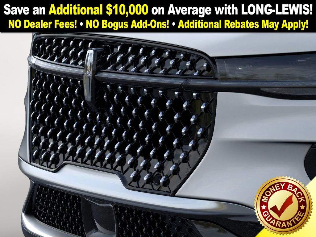 Equipment Group 102A (110V Power Converter, 19" Bright Machined Aluminum Wheels, Auto Air Refresh, BlueCruise Equipped (4-Years Included), Digital Scent, Hands-Free Power Liftgate, Lincoln Soft Touch Heated Front Captain's Chairs, Panoramic Vista Roof with Powershade, Radio: AM/FM Revel Audio System, Rear Heated Seats with Switch Control, SiriusXM with 360L, and Ventilated Front Seats), Lincoln Connectivity Package, 10 Speakers, 4-Wheel Disc Brakes, ABS brakes, Air Conditioning, Alloy wheels, AM/FM radio: SiriusXM with 360L, Apple CarPlay/Android Auto, Auto High-beam Headlights, Auto tilt-away steering wheel, Auto-dimming Rear-View mirror, Automatic temperature control, Brake assist, Bumpers: body-color, Compass, Delay-off headlights, Driver door bin, Driver vanity mirror, Dual front impact airbags, Dual front side impact airbags, Electronic Stability Control, Emergency communication system: 911 Assist, Exterior Parking Camera Rear, Four wheel independent suspension, Front anti-roll bar, Front Bucket Seats, Front Center Armrest w/Storage, Front dual zone A/C, Front reading lights, Fully automatic headlights, Garage door transmitter, Heated door mirrors, Heated front seats, Heated steering wheel, Illuminated entry, Knee airbag, Leather steering wheel, Lincoln Digital Experience, Low tire pressure warning, Memory seat, Navigation System, Occupant sensing airbag, Outside temperature display, Overhead airbag, Overhead console, Panic alarm, Passenger door bin, Passenger vanity mirror, Power door mirrors, Power driver seat, Power Liftgate, Power passenger seat, Power steering, Power windows, Radio data system, Radio: AM/FM Premium Audio, Rain sensing wipers, Rear anti-roll bar, Rear reading lights, Rear seat center armrest, Rear window defroster, Rear window wiper, Remote keyless entry, Security system, SiriusXM with 360L (4 Year Plan), Speed control, Speed-sensing steering, Speed-Sensitive Wipers, Split folding rear seat, Spoiler, Steering wheel memory, Steering wheel mounted audio controls, Tachometer, Telescoping steering wheel, Tilt steering wheel, Traction control, Trip computer, Turn signal indicator mirrors, Variably intermittent wipers, and Wheels: 20" Bright Machined Aluminum. Price includes: $4000 - Retail Customer Cash. Exp. 03/31/2026