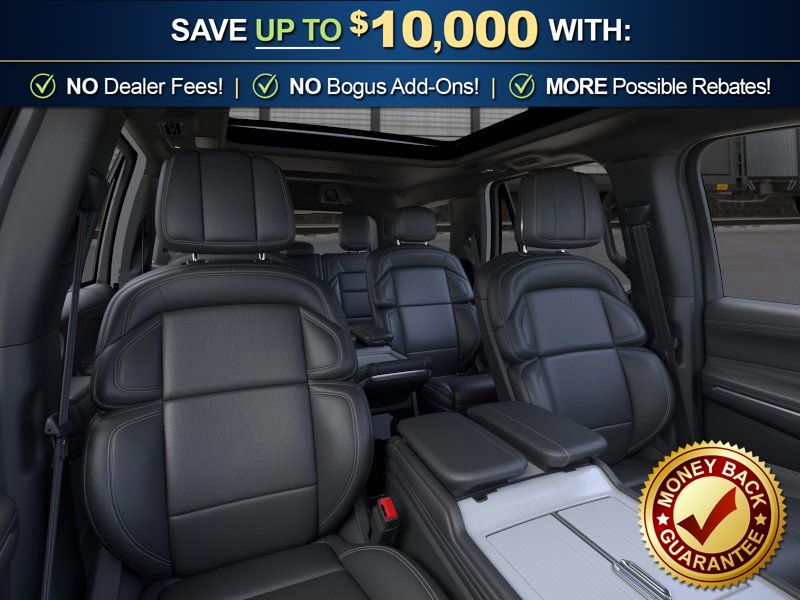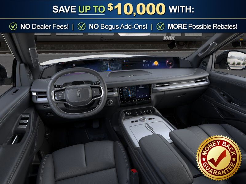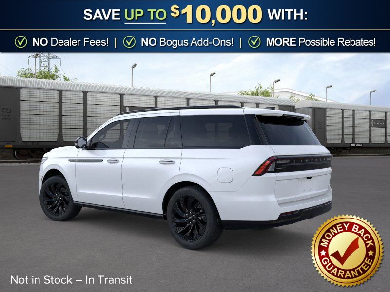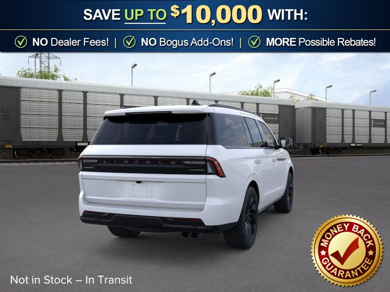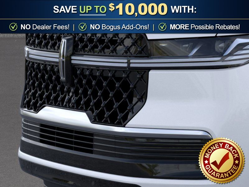 Dealer Discount of $4,333 off MSRP Star White Metallic Tri-Coat 2026 Lincoln Navigator Reserve NLT 4WD 10-Speed Automatic 3.5L V6 4WD, Black Onyx Premium Lthr Leather, 26mm Engine Radiator, 28 Speakers, 2nd Row Heated & Ventilated Dual Captain's Chair, 3rd row seats: split-bench, 4-Wheel Disc Brakes, ABS brakes, Adaptive suspension, Air Conditioning, Alloy wheels, AM/FM radio: SiriusXM with 360L, Apple CarPlay/Android Auto, Audio memory, Auto Heated/Ventilated Premium Leather Captain's Chairs, Auto High-beam Headlights, Auto Start-Stop Technology, Auto tilt-away steering wheel, Auto-dimming door mirrors, Auto-dimming Rear-View mirror, Auto-leveling suspension, Automatic temperature control, Black Accent Badge, Black Accent Interior Pack, Black Beltline Molding, Black Painted Roof Rails, BlueCruise Equipped (4-Years Included), Brake assist, Bumpers: body-color, Compass, Delay-off headlights, Driver door bin, Driver vanity mirror, Driver's Seat Mounted Armrest, Dual front impact airbags, Dual front side impact airbags, Electronic Stability Control, Emergency communication system: 911 Assist, Exterior Parking Camera Rear, Four wheel independent suspension, Front anti-roll bar, Front Bucket Seats, Front Bumper Fascia, Front dual zone A/C, Front reading lights, Fully automatic headlights, Garage door transmitter, Heated door mirrors, Heated front seats, Heated rear seats, Heated steering wheel, Heavy-Duty Trailer Tow Package, HVAC memory, Illuminated entry, Jet Appearance Package, Leather steering wheel, Lincoln App, Lincoln Connectivity Package (4-Years Included), Lincoln Digital Experience, Lincoln Lit Star, Lincoln Security Package, Low tire pressure warning, Memory seat, Navigation system: Connected Navigation (1-year trial), Occupant sensing airbag, Outside temperature display, Overhead airbag, Overhead console, Panic alarm, Passenger door bin, Passenger seat mounted armrest, Passenger vanity mirror, Power adjustable rear head restraints, Power door mirrors, Power driver seat, Power moonroof: Panoramic Vista Roof, Power passenger seat, Power steering, Power windows, Radio data system, Radio: Revel Ultima 3D Audio System, Rain sensing wipers, Rear air conditioning, Rear anti-roll bar, Rear audio controls, Rear reading lights, Rear window defroster, Rear window wiper, Reclining 3rd row seat, Remote keyless entry, Security system, SiriusXM with 360L (3 Months Trial), Speed control, Speed-sensing steering, Speed-Sensitive Wipers, Split folding rear seat, Spoiler, Steering wheel memory, Steering wheel mounted audio controls, Tachometer, Telescoping steering wheel, Tilt steering wheel, Traction control, Trailer Brake Controller, Trip computer, Turn signal indicator mirrors, Unique Lincoln Grille Pillar Black Surround, Variably intermittent wipers, Ventilated front seats, Wheels: 22" Dark Tarnished Aluminum, Wheels: 22" High-Gloss Ebony Aluminum, 4WD, Black Onyx Premium Lthr Leather.