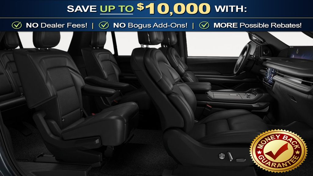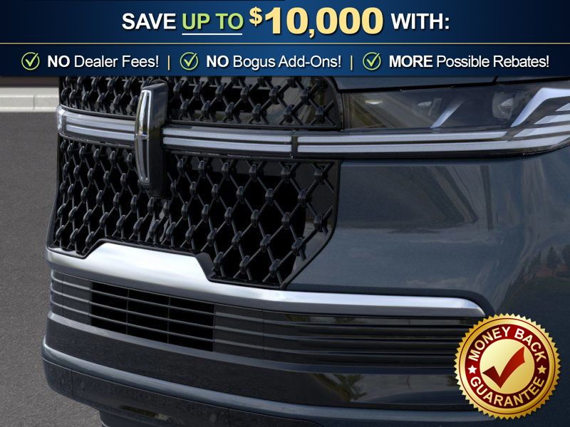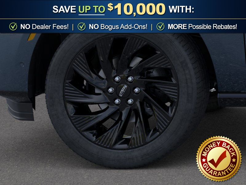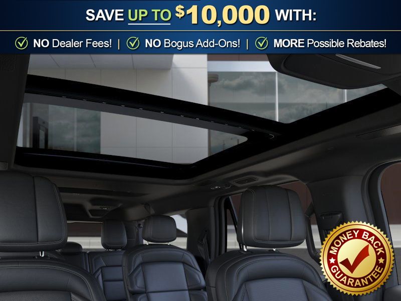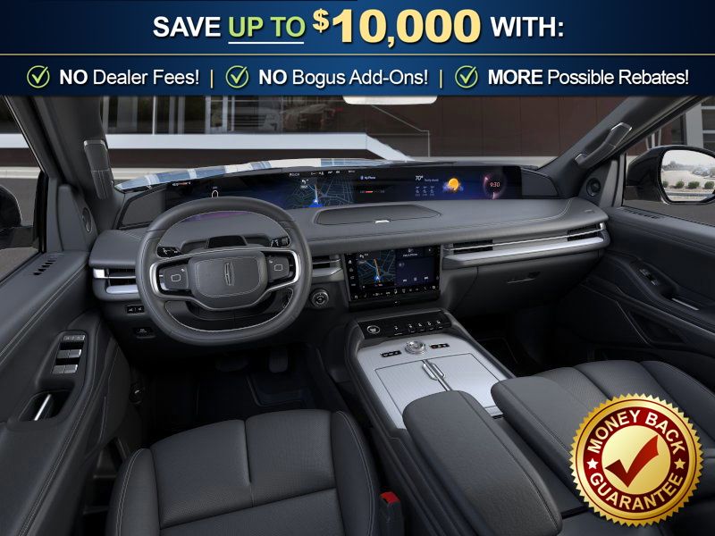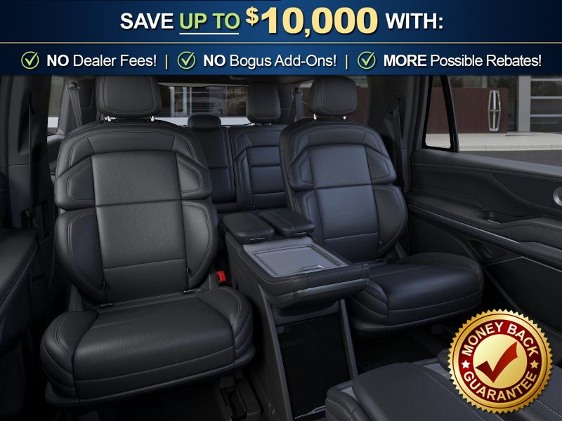 Equipment Group 202A Reserve II (Auto Heated/Ventilated Premium Leather Captain's Chairs, BlueCruise Equipped (4-Years Included), Lincoln App, Lincoln Digital Experience, Radio: Revel Ultima 3D Audio System, SiriusXM with 360L (3 Months Trial), and Wheels: 22" Dark Tarnished Aluminum), Heavy-Duty Trailer Tow Package (26mm Engine Radiator and Trailer Brake Controller), Jet Appearance Package (Black Accent Badge, Black Accent Interior Pack, Black Beltline Molding, Black Painted Roof Rails, Front Bumper Fascia, Lincoln Lit Star, Unique Lincoln Grille Pillar Black Surround, and Wheels: 22" High-Gloss Ebony Aluminum), Lincoln Connectivity Package (4-Years Included), Lincoln Security Package, 28 Speakers, 2nd Row Heated & Ventilated Dual Captain's Chair, 3rd row seats: split-bench, 4-Wheel Disc Brakes, ABS brakes, Adaptive suspension, Air Conditioning, Alloy wheels, AM/FM radio: SiriusXM with 360L, Apple CarPlay/Android Auto, Audio memory, Auto High-beam Headlights, Auto Start-Stop Technology, Auto tilt-away steering wheel, Auto-dimming door mirrors, Auto-dimming Rear-View mirror, Auto-leveling suspension, Automatic temperature control, Brake assist, Bumpers: body-color, Compass, Delay-off headlights, Driver door bin, Driver vanity mirror, Driver's Seat Mounted Armrest, Dual front impact airbags, Dual front side impact airbags, Electronic Stability Control, Emergency communication system: 911 Assist, Exterior Parking Camera Rear, Four wheel independent suspension, Front anti-roll bar, Front Bucket Seats, Front dual zone A/C, Front reading lights, Fully automatic headlights, Garage door transmitter, Heated door mirrors, Heated front seats, Heated rear seats, Heated steering wheel, HVAC memory, Illuminated entry, Leather steering wheel, Low tire pressure warning, Memory seat, Navigation system: Connected Navigation (1-year trial), Occupant sensing airbag, Outside temperature display, Overhead airbag, Overhead console, Panic alarm, Passenger door bin, Passenger seat mounted armrest, Passenger vanity mirror, Power adjustable rear head restraints, Power door mirrors, Power driver seat, Power moonroof: Panoramic Vista Roof, Power passenger seat, Power steering, Power windows, Radio data system, Rain sensing wipers, Rear air conditioning, Rear anti-roll bar, Rear audio controls, Rear reading lights, Rear window defroster, Rear window wiper, Reclining 3rd row seat, Remote keyless entry, Security system, Speed control, Speed-sensing steering, Speed-Sensitive Wipers, Split folding rear seat, Spoiler, Steering wheel memory, Steering wheel mounted audio controls, Tachometer, Telescoping steering wheel, Tilt steering wheel, Traction control, Trip computer, Turn signal indicator mirrors, Variably intermittent wipers, and Ventilated front seats.