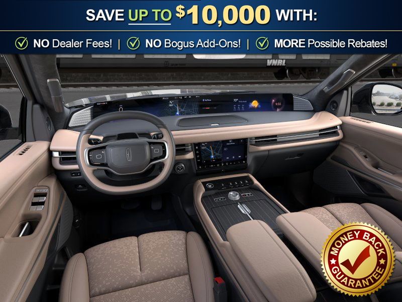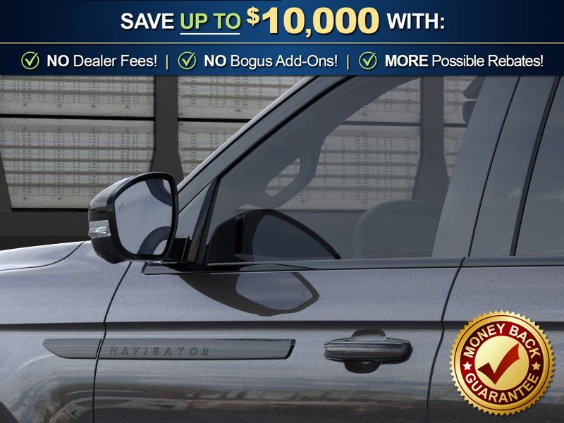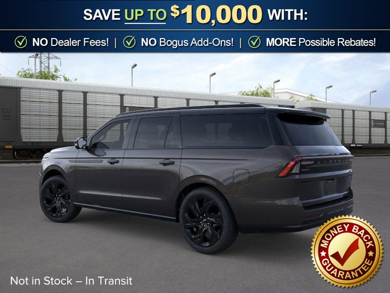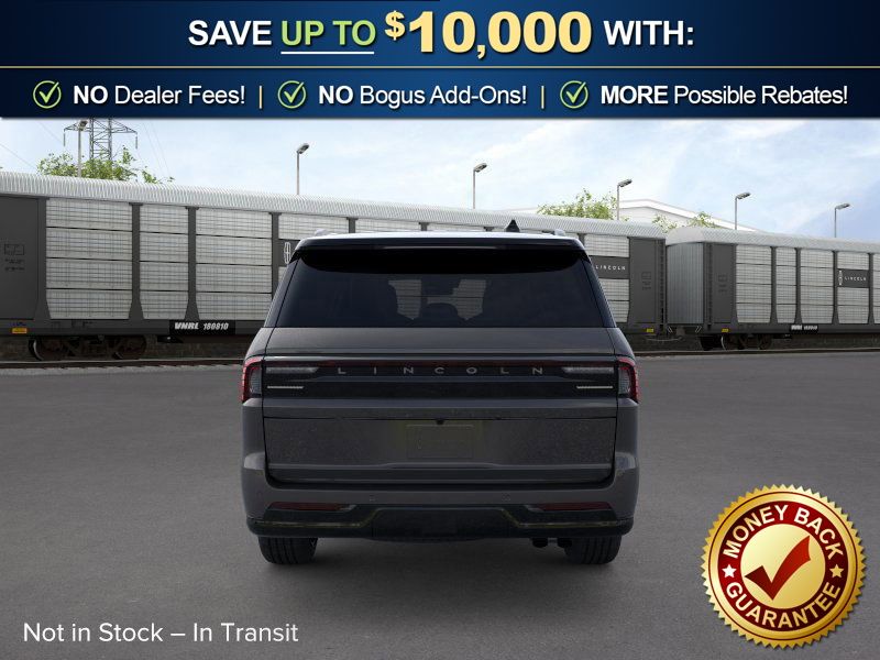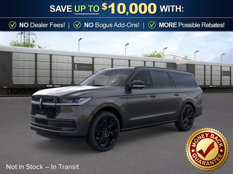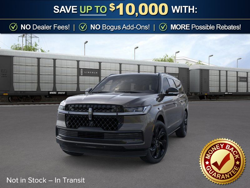 Chroma Caviar Dark Gray Metallic Clearcoat 2026 Lincoln Navigator L Black Label NLT 4WD 10-Speed Automatic 3.5L V6 28 Speakers, 3rd row seats: split-bench, 4-Wheel Disc Brakes, ABS brakes, Adaptive suspension, Adjustable pedals, Air Conditioning, All-Weather Floor Liners with Front and Rear Carpet Floor Mats, Alloy wheels, AM/FM radio: SiriusXM with 360L, Apple CarPlay/Android Auto, Audio memory, Auto High-beam Headlights, Auto Start-Stop Technology, Auto tilt-away steering wheel, Auto-dimming door mirrors, Auto-dimming Rear-View mirror, Auto-leveling suspension, Automatic temperature control, Black Accent Badge, Black Beltline Molding, Black Label Special Edition Package, Black Painted Roof, Black Painted Roof Rails, BlueCruise Equipped (4-Years Included), Brake assist, Bumpers: body-color, Compass, Delay-off headlights, Driver door bin, Driver vanity mirror, Driver's Seat Mounted Armrest, Dual front impact airbags, Dual front side impact airbags, Electronic Stability Control, Emergency communication system: 911 Assist, Enlighten Theme, Exterior Parking Camera Rear, Four wheel independent suspension, Front anti-roll bar, Front Bucket Seats, Front Bumper Fascia, Front dual zone A/C, Front reading lights, Fully automatic headlights, Garage door transmitter, Head restraints memory, Heated door mirrors, Heated front seats, Heated rear seats, Heated steering wheel, HVAC memory, Illuminated entry, Leather steering wheel, Lincoln App, Lincoln Connectivity Package (4-Years Included), Lincoln Digital Experience, Lincoln Play (rear Seat Entertainment System), Lincoln Security Package, Low tire pressure warning, Memory seat, Navigation system: Connected Navigation (1-year trial), Occupant sensing airbag, Outside temperature display, Overhead airbag, Overhead console, Panic alarm, Passenger door bin, Passenger seat mounted armrest, Passenger vanity mirror, Pedal memory, Power adjustable front head restraints, Power adjustable rear head restraints, Power door mirrors, Power driver seat, Power moonroof: Panoramic Vista Roof, Power passenger seat, Power steering, Power windows, Radio data system, Radio: Revel Ultima 3D Audio System, Rain sensing wipers, Rear air conditioning, Rear anti-roll bar, Rear audio controls, Rear reading lights, Rear seat center armrest, Rear window defroster, Rear window wiper, Reclining 3rd row seat, Remote keyless entry, Security system, SiriusXM with 360L (3 Months Trial), Speed control, Speed-sensing steering, Speed-Sensitive Wipers, Split folding rear seat, Spoiler, Steering wheel memory, Steering wheel mounted audio controls, Tachometer, Telescoping steering wheel, Tilt steering wheel, Traction control, Trip computer, Turn signal indicator mirrors, Unique Lincoln Grille Pillar Black Surround, Variably intermittent wipers, Ventilated front seats, Ventilated rear seats, Wheels: 22" High-Gloss Ebony Aluminum, Wheels: 24" High-Gloss Ebony Aluminum.