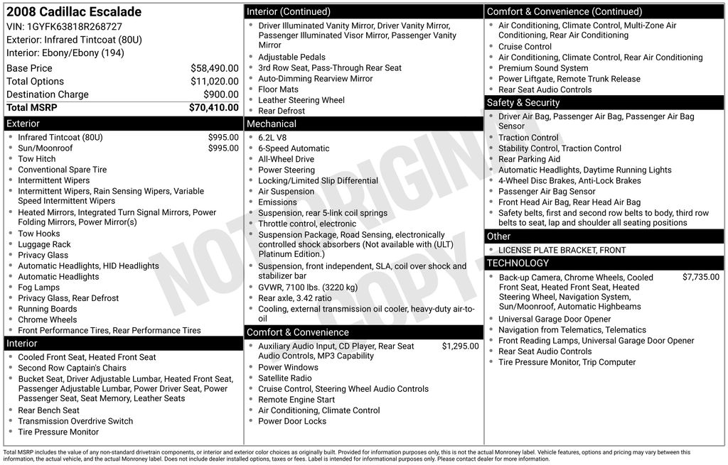 2008 Cadillac Escalade Base SUV Vortec V8 SFI