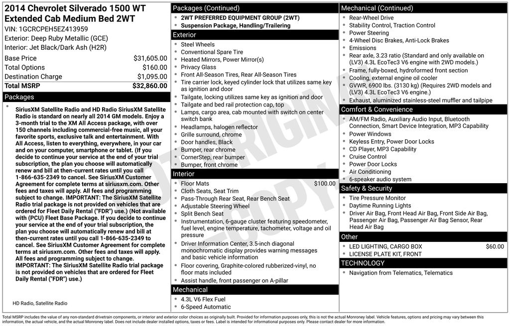 2014 Chevrolet Silverado 1500 Work Truck RWD 6-Speed Automatic Electronic with Overdrive EcoTec3 4.3L V6 Flex Fuel Deep Ruby Metallic