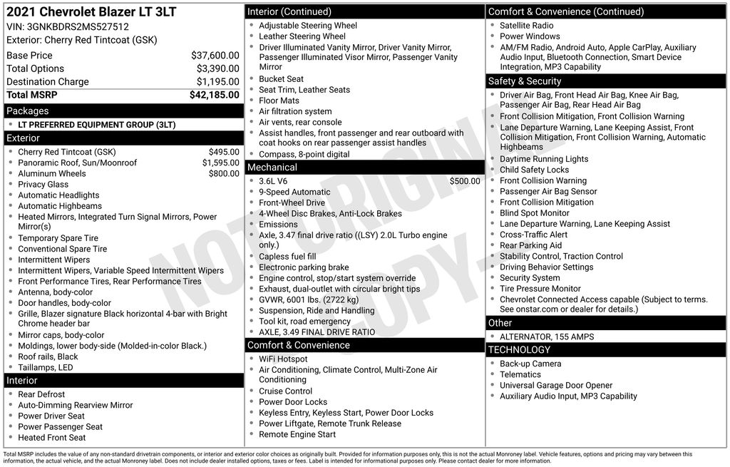 2021 Chevrolet Blazer LT FWD 9-Speed Automatic 3.6L V6 SIDI DOHC VVT Cherry Red Tintcoat