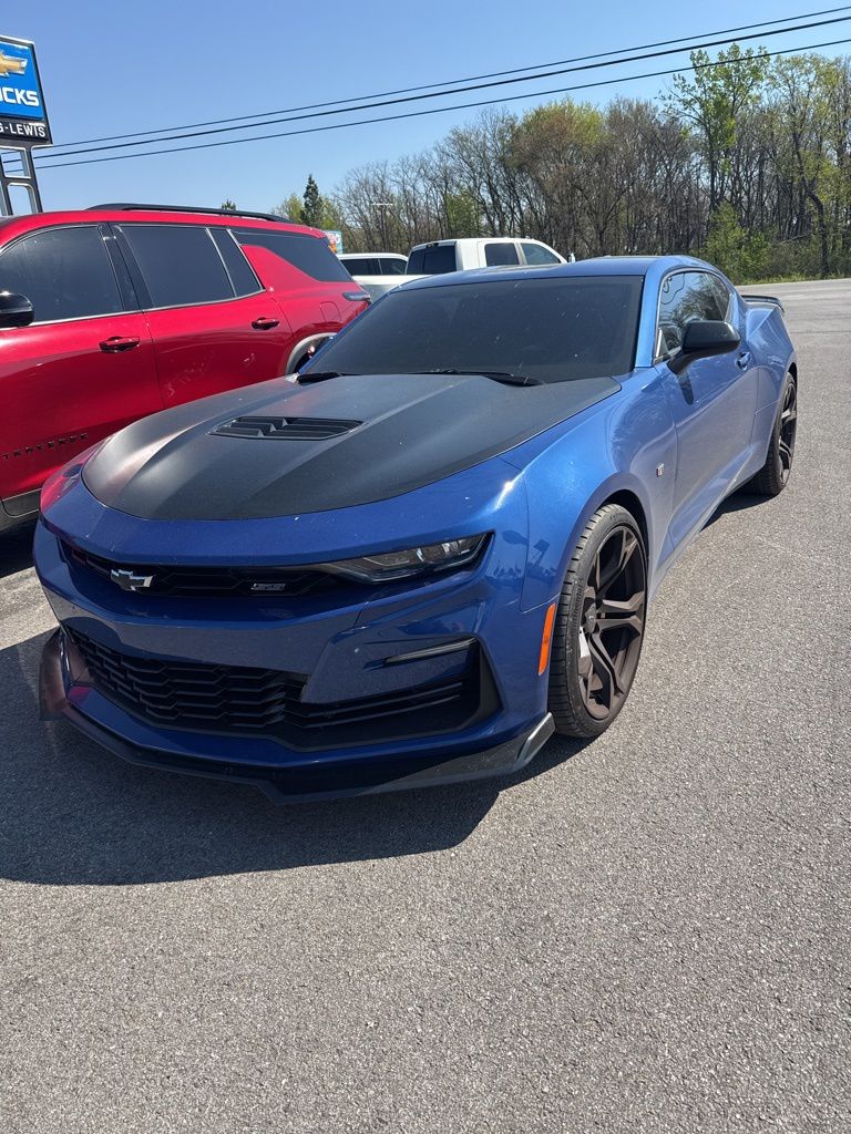 2022 Chevrolet Camaro SS 1SS Riverside Blue Metallic SS 1SS RWD 6-Speed Manual 6.2L V8 4-Wheel Disc Brakes, 6 Speakers, 6-Speaker Audio System Feature, 6-Way Power Front Passenger Seat Adjuster, 8-Way Power Driver Seat Adjuster, ABS brakes, Air Conditioning, Alloy Sport Pedals, Alloy wheels, Apple CarPlay/Android Auto, Automatic temperature control, Black 6.2L Strut Tower Brace (LPO), Black Fuel Filler Door w/Gloss Black Insert (LPO), Bluetooth® For Phone, Brake assist, Bumpers: body-color, Cloth Seat Trim, Compass, Delay-off headlights, Driver door bin, Driver vanity mirror, Dual front impact airbags, Dual front side impact airbags, Dual Mode Exhaust, Electronic Stability Control, Exterior Parking Camera Rear, Four wheel independent suspension, Front anti-roll bar, Front Bucket Seats, Front Center Armrest, Front reading lights, Front Sport Bucket Seats, Fully automatic headlights, Illuminated entry, Knee airbag, Leather Shift Knob, Leather-Trimmed Seat Trim w/Sueded Inserts, Low tire pressure warning, Occupant sensing airbag, Overhead airbag, Panic alarm, Passenger door bin, Passenger vanity mirror, Power door mirrors, Power driver seat, Power passenger seat, Power steering, Power windows, Premium audio system: Chevrolet Infotainment System, Radio data system, Radio: Chevrolet Infotainment 3 Plus System, Rear anti-roll bar, Rear window defroster, RECARO Performance Front Bucket Seats, Remote keyless entry, Security system, SiriusXM w/360L, Speed control, Speed-sensing steering, Steering wheel mounted audio controls, Sueded Flat-Bottom 3-Spoke Steering Wheel, Sueded Microfiber-Wrapped Shift Knob, Tachometer, Telescoping steering wheel, Tilt steering wheel, Traction control, Trip computer, Variably intermittent wipers, Voltmeter.