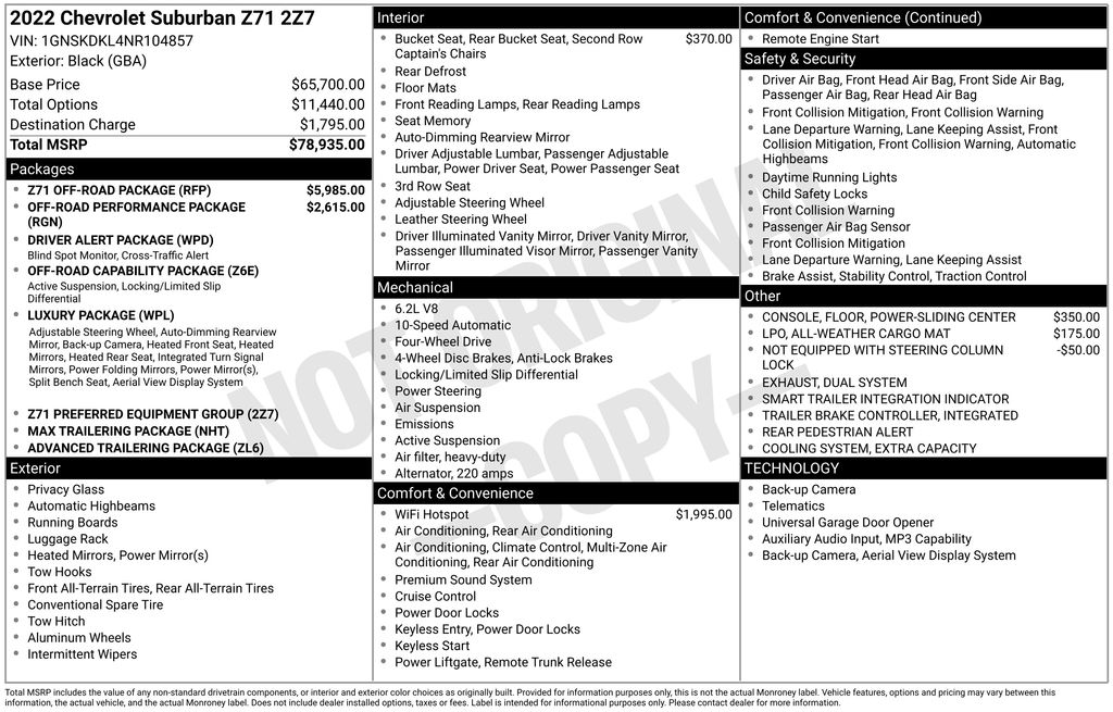 2022 Chevrolet Suburban Z71 4WD 10-Speed Automatic with Overdrive EcoTec3 6.2L V8 Black