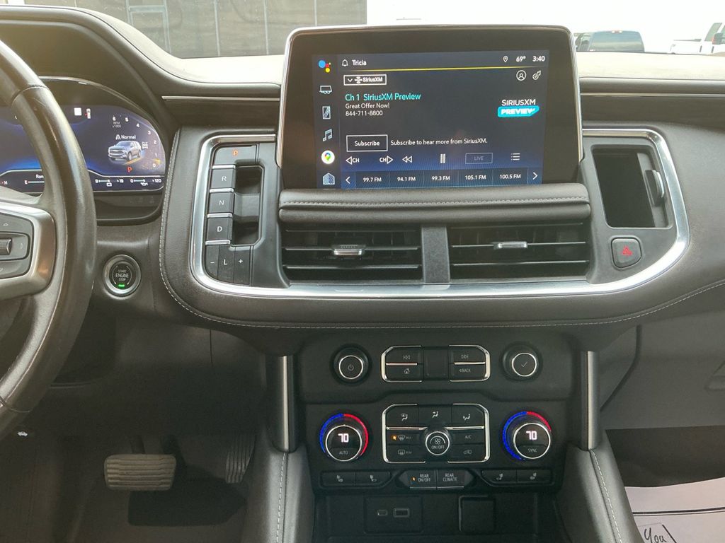 2022 Chevrolet Tahoe Z71 Summit White Z71 4WD 10-Speed Automatic with Overdrive EcoTec3 5.3L V8 4WD, Gideon/Very Dark Atmosphere Leather, 10-Way Power Driver & Passenger Seat Adjusters, 1st & 2nd Row Color-Keyed Carpeted Floor Mats, 2-Speed Active Electronic AutoTrac Transfer Case, 2nd Row Pwr Release 60/40 Split-Folding Bench Seat, 3.23 Rear Axle Ratio, 3rd Row 60/40 Power-Folding Split-Bench Seat, 3rd row seats: split-bench, 4-Wheel Disc Brakes, 9 Speakers, ABS brakes, Air Conditioning, Alloy wheels, AM/FM radio: SiriusXM with 360L, Apple CarPlay/Android Auto, Auto High-beam Headlights, Auto-Dimming Inside Rear-View Mirror, Auto-dimming Rear-View mirror, Automatic Stop/Start, Automatic temperature control, Black Tubular Assist Steps, Bose 9-Speaker Stereo Audio System Feature, Brake assist, Bright Front & Rear Door Sill Plates, Bumpers: body-color, Color-Keyed Carpeting Floor Covering, Compass, Delay-off headlights, Driver & Front Outboard Passenger Airbags, Driver Alert Package, Driver door bin, Driver vanity mirror, Dual front impact airbags, Dual front side impact airbags, Dual-Pane Power Panoramic Sunroof, Electronic Stability Control, Emergency communication system: OnStar and Chevrolet connected services capable, Enhanced Driver Information Center, Floor Console, Floor Console w/Storage Area, Four wheel independent suspension, Front anti-roll bar, Front Bucket Seats, Front Center Armrest, Front dual zone A/C, Front High-Approach Angle Fascia, Front High-Back Reclining Bucket Seats, Front reading lights, Fully automatic headlights, Garage door transmitter, Hands-Free Rear Power Programmable Liftgate, HD Surround Vision, Heated 2nd Row Outboard Seats, Heated door mirrors, Heated Driver & Front Passenger Seats, Heated front seats, Heated Steering Wheel, Hill Descent Control, Illuminated entry, Infotainment Display, Lane Change Alert w/Side Blind Zone Alert, Leather steering wheel, Leather-Appointed Seat Trim, Leather-Wrapped Steering Wheel, LED Daytime Running Lamps, License Plate Front Mounting Package, Low tire pressure warning, Luxury Package, Memory seat, Memory Settings, Memory Settings for Driver, Navigation System, Not Equipped w/Steering Column Lock, Occupant sensing airbag, Outside Heated Power-Adjustable Mirrors, Outside temperature display, Overhead airbag, Overhead console, Panic alarm, Passenger door bin, Passenger vanity mirror, Power door mirrors, Power driver seat, Power Liftgate, Power passenger seat, Power Release 2nd Row Bucket Seats, Power steering, Power Tilt & Telescopic Steering Column, Power windows, Preferred Equipment Group 2Z7, Premium audio system: Chevrolet Infotainment System 3, Premium Smooth Ride Suspension, Radio: Chevrolet Infotainment 3 Premium System, Rain sensing wipers, Rear air conditioning, Rear anti-roll bar, Rear Cross Traffic Alert, Rear Pedestrian Alert, Rear reading lights, Rear seat center armrest, Rear window defroster, Rear window wiper, Red Horizontal-Mounted Recovery Hooks, Remote keyless entry, Remote Start, Roof rack: rails only, Security system, SiriusXM Radio w/360L, Speed control, Speed-sensing steering, Split folding rear seat, Spoiler, Start/Stop System Disable Button, Steering wheel mounted audio controls, Tachometer, Telescoping steering wheel, Tilt steering wheel, Traction control, Trip computer, Universal Home Remote, Variably intermittent wipers, Voltmeter, Wheels: 20" x 9" Machined Aluminum, Wireless Charging, 4WD, Gideon/Very Dark Atmosphere Leather.