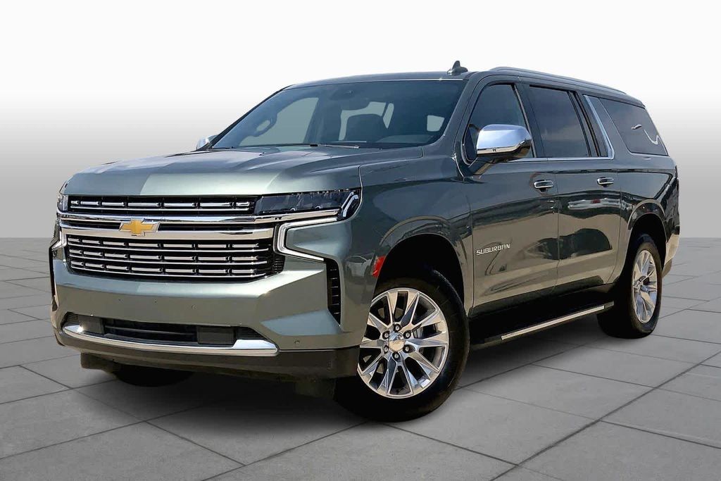 2023 Chevrolet Suburban Premier Silver Sage Metallic Premier 4WD 10-Speed Automatic with Overdrive EcoTec3 5.3L V8 10 Speakers, 1st & 2nd Row Color-Keyed Carpeted Floor Mats, 2-Speed Active Electronic AutoTrac Transfer Case, 20" x 9" Polished Aluminum Wheels, 3.23 Rear Axle Ratio, 3rd Row 60/40 Power-Folding Split-Bench, 3rd row seats: split-bench, 4-Wheel Disc Brakes, ABS brakes, Adaptive suspension, Air Conditioning, Alloy wheels, AM/FM radio: SiriusXM with 360L, Apple CarPlay/Android Auto, Auto High-beam Headlights, Auto-dimming door mirrors, Auto-Dimming Inside Rear-View Mirror, Auto-dimming Rear-View mirror, Auto-leveling suspension, Automatic temperature control, Bose 10-Speaker Surround w/CenterPoint, Brake assist, Bright Front & Rear Door Sill Plates, Bumpers: body-color, Chrome Door Handles w/Body-Color Strip, Chrome Mirror Caps, Color-Keyed Carpeting Floor Covering, Compass, Delay-off headlights, Deleted 3 Years of Remote Access, Driver & Front Outboard Passenger Airbags, Driver door bin, Driver vanity mirror, Dual Exhaust System, Dual front impact airbags, Dual front side impact airbags, Electronic Stability Control, Emergency communication system: OnStar and Chevrolet connected services capable, Enhanced Driver Information Center, Floor Console, Four wheel independent suspension, Front anti-roll bar, Front Bucket Seats, Front Center Armrest, Front dual zone A/C, Front reading lights, Fully automatic headlights, Garage door transmitter, Hands-Free Rear Power Programmable Liftgate, Heated & Ventilated Driver & Front Passenger Seats, Heated 2nd Row Outboard Seats, Heated door mirrors, Heated Driver & Front Passenger Seats, Heated front seats, Heated rear seats, Heated Steering Wheel, Heated steering wheel, Hill Descent Control, Illuminated entry, Infotainment Display, Lane Change Alert w/Side Blind Zone Alert, LED Daytime Running Lamps, License Plate Front Mounting Package, Low tire pressure warning, Magnetic Ride Control Suspension, Memory seat, Memory Settings, Navigation System, Occupant sensing airbag, Outside Heated Power-Adjustable Mirrors, Outside temperature display, Overhead airbag, Overhead console, Panic alarm, Passenger door bin, Passenger vanity mirror, Perforated Leather Seating Surfaces, Power door mirrors, Power driver seat, Power Liftgate, Power passenger seat, Power Release 2nd Row Bucket Seats, Power steering, Power Tilt & Telescopic Steering Column, Power windows, Preferred Equipment Group 1LZ, Premium audio system: Chevrolet Infotainment 3 Premium, Radio: Chevrolet Infotainment 3 Premium System, Rain sensing wipers, Rear air conditioning, Rear anti-roll bar, Rear Cross Traffic Alert, Rear reading lights, Rear window defroster, Rear window wiper, Remote keyless entry, Remote Start, Roof rack: rails only, Safety Alert Seat, Security system, SiriusXM Radio w/360L, Speed control, Speed-sensing steering, Split folding rear seat, Spoiler, Steering wheel memory, Steering wheel mounted audio controls, Tachometer, Telescoping steering wheel, Tilt steering wheel, Traction control, Trip computer, Turn signal indicator mirrors, Universal Home Remote, Variably intermittent wipers, Ventilated front seats, Voltmeter, Wireless Charging, Wrapped Steering Wheel.