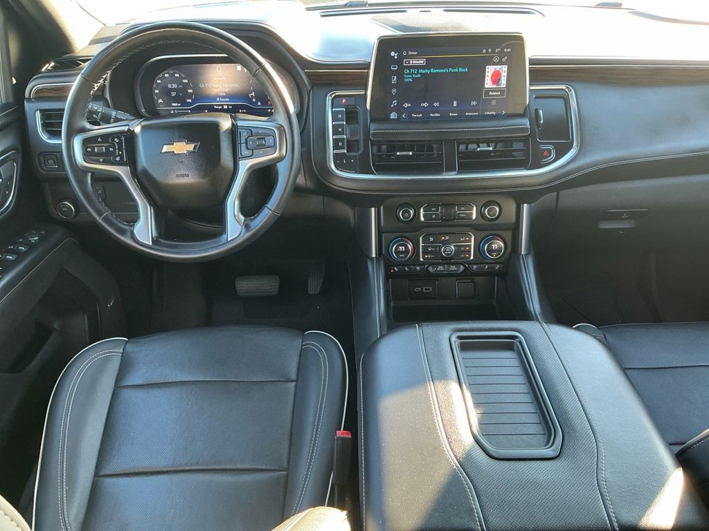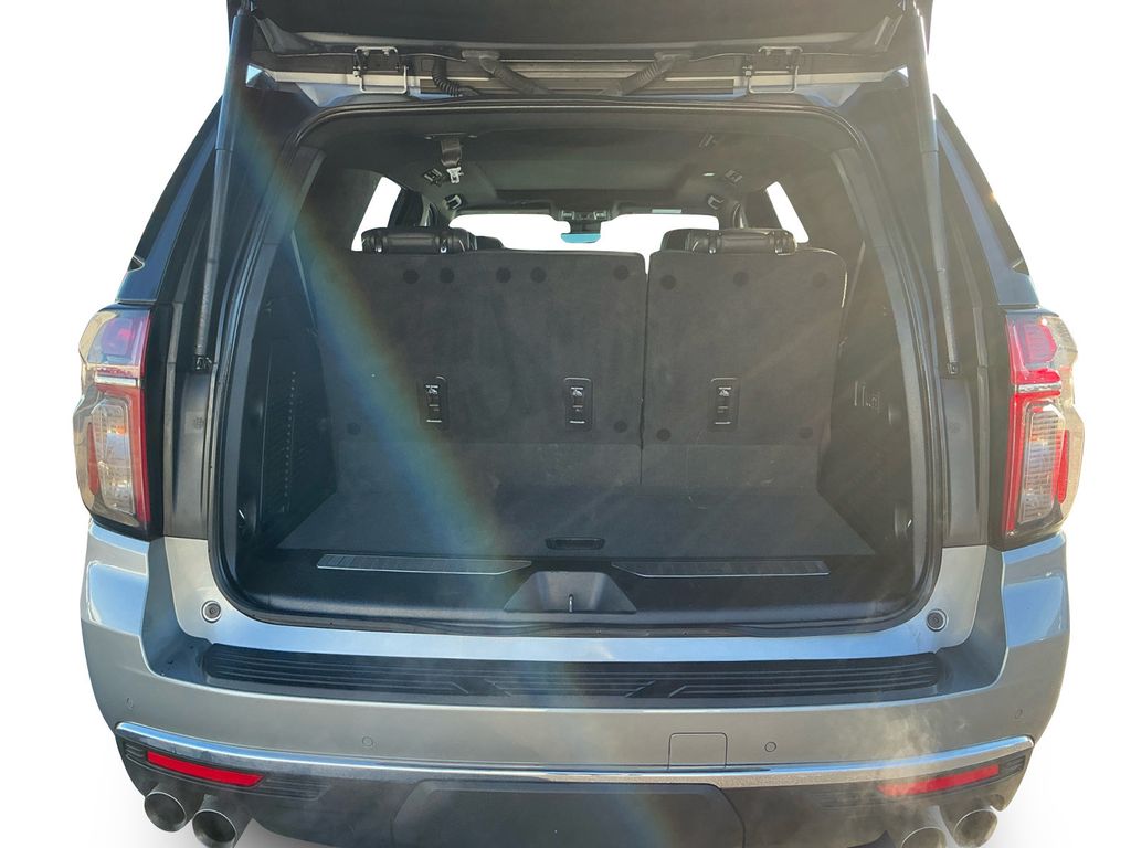 2023 Chevrolet Tahoe Premier Sterling Gray Metallic Premier RWD 10-Speed Automatic with Overdrive EcoTec3 5.3L V8 Jet Black Leather, 10 Speakers, 15" Diagonal Multi-Color Head-Up Display, 1st & 2nd Row Color-Keyed Carpeted Floor Mats, 1st & 2nd Rows Premium Floor Liners (LPO), 20" x 9" Polished Aluminum Wheels, 3.23 Rear Axle Ratio, 3rd Row 60/40 Power-Folding Split-Bench Seat, 3rd row seats: split-bench, 4-Wheel Disc Brakes, ABS brakes, Adaptive suspension, Air Conditioning, Alloy wheels, AM/FM radio: SiriusXM with 360L, Apple CarPlay/Android Auto, Auto High-beam Headlights, Auto-dimming door mirrors, Auto-Dimming Inside Rear-View Mirror, Auto-dimming Rear-View mirror, Auto-leveling suspension, Automatic temperature control, Black Name Plates (LPO), Bose 10-Speaker Centerpoint Surround Audio Sys Ft, Brake assist, Bright Front & Rear Door Sill Plates, Bumpers: body-color, Chrome Door Handles w/Body-Color Strip, Chrome Mirror Caps, Color-Keyed Carpeting Floor Covering, Compass, Delay-off headlights, Driver & Front Outboard Passenger Airbags, Driver door bin, Driver vanity mirror, Dual Exhaust System, Dual front impact airbags, Dual front side impact airbags, Dual-Pane Power Panoramic Sunroof, Electronic Stability Control, Emergency communication system: OnStar and Chevrolet connected services capable, Enhanced Display & Alert Package, Enhanced Driver Information Center, Floor Console, Four wheel independent suspension, Front & Rear Black Bowtie Emblems (LPO), Front anti-roll bar, Front Bucket Seats, Front Center Armrest, Front dual zone A/C, Front High-Back Reclining Bucket Seats, Front reading lights, Fully automatic headlights, Garage door transmitter, Hands-Free Rear Power Programmable Liftgate, HD Surround Vision, Heated & Ventilated Driver & Front Passenger Seats, Heated 2nd Row Outboard Seats, Heated door mirrors, Heated Driver & Front Passenger Seats, Heated front seats, Heated rear seats, Heated Steering Wheel, Heated steering wheel, Illuminated entry, Infotainment Display, Inside Rearview Auto-Dimming Rear Camera Mirror, Lane Change Alert w/Side Blind Zone Alert, LED Daytime Running Lamps, Low tire pressure warning, Magnetic Ride Control Suspension, Memory seat, Memory Settings, Navigation System, Occupant sensing airbag, Outside Heated Power-Adjustable Mirrors, Outside temperature display, Overhead airbag, Overhead console, Panic alarm, Passenger door bin, Passenger vanity mirror, Perforated Leather Seat Trim, Power door mirrors, Power driver seat, Power Liftgate, Power passenger seat, Power Release 2nd Row Bucket Seats, Power steering, Power Tilt & Telescopic Steering Column, Power windows, Preferred Equipment Group 1LZ, Premium audio system: Chevrolet Infotainment 3 Premium, Radio: Chevrolet Infotainment 3 Premium System, Rain sensing wipers, Rear air conditioning, Rear anti-roll bar, Rear Camera Mirror Washer, Rear Cross Traffic Alert, Rear Pedestrian Alert, Rear reading lights, Rear window defroster, Rear window wiper, Remote keyless entry, Remote Start, Roof rack: rails only, Safety Alert Seat, Security system, Set of 4 Wheel Locks (LPO), SiriusXM Radio w/360L, Speed control, Speed-sensing steering, Split folding rear seat, Spoiler, Steering wheel memory, Steering wheel mounted audio controls, Tachometer, Telescoping steering wheel, Tilt steering wheel, Traction control, Trip computer, Turn signal indicator mirrors, Universal Home Remote, Variably intermittent wipers, Ventilated front seats, Voltmeter, Wheels: 22" x 9" 6-Spoke Carbon Flash Metallic Alum, Wireless Charging, Wrapped Steering Wheel, Jet Black Leather.
