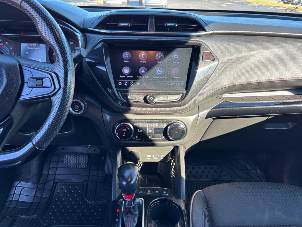 2023 Chevrolet TrailBlazer RS Crimson Metallic RS FWD CVT 1.3L Ecotec Turbo DOHC SIDI w/VVT 1 Type-A & 1 Type-C USB Charging-Only Ports, 120-Volt Power Outlet, 2-Way Adjustable Front Head Restraints, 2-Way Power Driver Lumbar Seat Adjuster, 4-Way Manual Front Passenger Seat Adjuster, 4-Wheel Disc Brakes, 5.45 Axle Ratio, 6 Speakers, 6-Speaker Audio System Feature, 7" Diagonal Color Touchscreen, 8-Way Power Driver Seat Adjuster, 8" Diagonal Color Touchscreen Display, ABS brakes, Air Conditioning, Alloy wheels, AM/FM radio: SiriusXM, Auto High-beam Headlights, Brake assist, Bumpers: body-color, Cabin Humidity Sensor, Cloth w/Leatherette Seat Trim, Compass, Convenience Package, Delay-off headlights, Driver & Front Passenger Illuminated Vanity Mirrors, Driver Confidence Package, Driver door bin, Driver vanity mirror, Dual front impact airbags, Dual front side impact airbags, Electronic Stability Control, Emergency communication system: OnStar and Chevrolet connected services capable, Exterior Parking Camera Rear, Flat-Folding Front Passenger Seatback, Front anti-roll bar, Front Bucket Seats, Front Center Armrest, Front fog lights, Front License Plate Bracket, Front reading lights, Front wheel independent suspension, Fully automatic headlights, Heated door mirrors, Heated Driver & Front Passenger Seats, Heated front seats, Heated Steering Wheel, Heated steering wheel, Illuminated entry, Inside Rear-View Auto-Dimming Mirror, Knee airbag, Lane Change Alert w/Side Blind Zone Alert, Leather Shift Knob, Leather steering wheel, Low tire pressure warning, Mosaic Black Metallic Two-Tone Roof, Not Equipped w/Heated Steering Wheel, Not Equipped w/Rear Park Assist, Occupant sensing airbag, Overhead airbag, Overhead console, Panic alarm, Passenger door bin, Passenger vanity mirror, Power door mirrors, Power driver seat, Power steering, Power windows, Preferred Equipment Group 1RS, Radio data system, Radio: Chevrolet Infotainment 3 System, Rear Cross Traffic Alert, Rear Park Assist, Rear seat center armrest, Rear side impact airbag, Rear window defroster, Rear window wiper, Remote keyless entry, Ride & Handling Suspension, Security system, Single-Zone Auto Climate Control Air Conditioning, SiriusXM Radio, Speed control, Split folding rear seat, Spoiler, Steering wheel mounted audio controls, Tachometer, Telescoping steering wheel, Tilt steering wheel, Traction control, Trip computer, Variably intermittent wipers, Wheels: 18" High Gloss Black Machined Aluminum, Wireless Apple CarPlay/Android Auto.