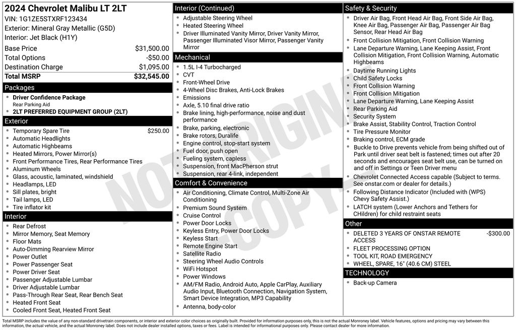 2024 Chevrolet Malibu LT FWD CVT 1.5L DOHC Mineral Gray Metallic