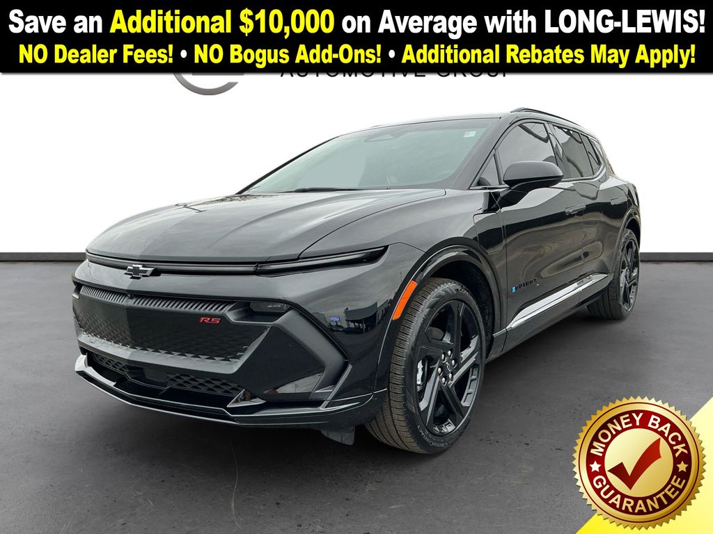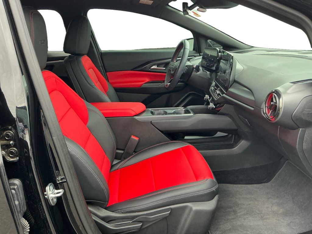 2025 Chevrolet Equinox EV RS Black RS FWD 1-Speed Automatic Electric Drive Unit 4-Wheel Disc Brakes, 6 Speakers, 6-Speaker Audio System Feature, 6-Way Manual Front Passenger Seat Adjuster, 8-Way Power Driver Seat Adjuster, ABS brakes, Air Conditioning, Alloy wheels, AM/FM radio: SiriusXM with 360L, Auto High-beam Headlights, Auto-dimming Rear-View mirror, Automatic temperature control, Brake assist, Bumpers: body-color, Compass, Delay-off headlights, Driver door bin, Driver vanity mirror, Dual front impact airbags, Dual front side impact airbags, Dual Level Charge Cord, Electronic Stability Control, Emergency communication system: OnStar and Chevrolet connected services capable, Evotex Seat Trim, Four wheel independent suspension, Front anti-roll bar, Front Bucket Seats, Front Center Armrest, Front reading lights, Fully automatic headlights, Heated door mirrors, Heated Driver and Front Passenger Seats Cushion and Seatback, Heated front seats, Heated steering wheel, Illuminated entry, Knee airbag, Low tire pressure warning, Navigation system: Google built-in compatibility (select service plan required, terms and limitations apply), Occupant sensing airbag, Outside temperature display, Overhead airbag, Overhead console, Panic alarm, Passenger door bin, Passenger vanity mirror, Power door mirrors, Power Driver Lumbar Control, Power driver seat, Power Liftgate, Power steering, Power windows, Preferred Equipment Group 2RS, Radio: 17.7" Diagonal Advanced Color LCD Display, Rear anti-roll bar, Rear reading lights, Rear seat center armrest, Rear window defroster, Rear window wiper, Remote keyless entry, Security system, SiriusXM with 360L Trial Subscription, Speed control, Split folding rear seat, Spoiler, Sport steering wheel, Steering wheel mounted audio controls, Telescoping steering wheel, Tilt steering wheel, Traction control, Trip computer, Turn signal indicator mirrors, Variably intermittent wipers, Wheels: 21" Black Painted Aluminum.