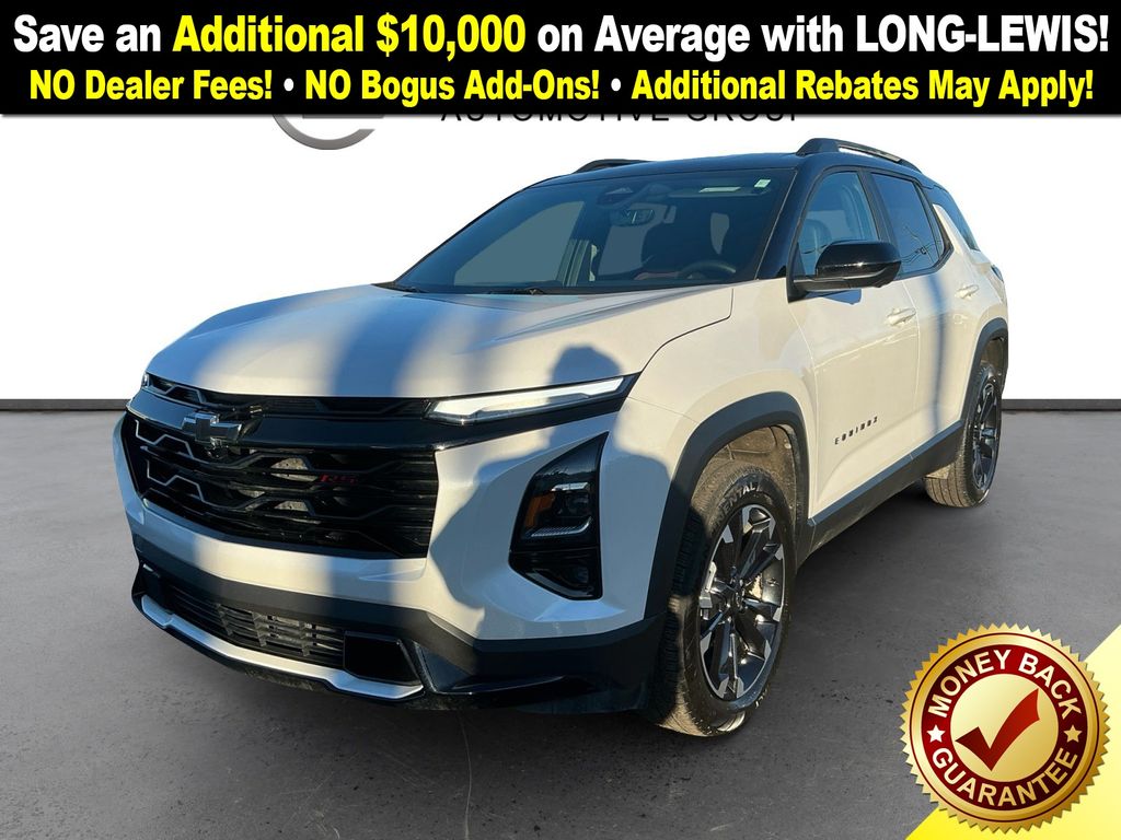 2025 Chevrolet Equinox RS Iridescent Pearl Tricoat RS FWD CVT 1.5L DOHC 2-Way Power Driver Lumbar Control Seat Adjuster, 4-Wheel Disc Brakes, 5.81 Final Drive Axle Ratio, 6 Speakers, ABS brakes, Air Conditioning, Alloy wheels, AM/FM radio: SiriusXM, Auto High-beam Headlights, Automatic temperature control, Brake assist, Bumpers: body-color, Compass, Delay-off headlights, Driver 8-Way Power Seat Adjuster, Driver door bin, Driver vanity mirror, Dual front impact airbags, Dual front side impact airbags, Electronic Stability Control, Emergency communication system: OnStar and Chevrolet connected services capable, Evotex Seat Trim, Four wheel independent suspension, Front anti-roll bar, Front Bucket Seats, Front Center Armrest, Front dual zone A/C, Front Fog Lamps, Front Passenger 4-Way Manual Seat Adjuster, Front reading lights, Fully automatic headlights, Garage door transmitter, HD Surround Vision, Heated door mirrors, Heated Driver & Front Passenger Seats, Heated front seats, Illuminated entry, Low tire pressure warning, Mosaic Black Metallic Roof, Navigation System, Occupant sensing airbag, Outside temperature display, Overhead airbag, Overhead console, Panic alarm, Passenger door bin, Passenger vanity mirror, Power door mirrors, Power driver seat, Power Liftgate, Power steering, Power windows, Preferred Equipment Group 1RS, Premium audio system: Chevrolet Infotainment 3, Radio data system, Radio: 11.3" Diagonal Advanced Color LCD Display, Rain sensing wipers, Rear anti-roll bar, Rear Camera Mirror Washer, Rear Pedestrian Alert, Rear reading lights, Rear seat center armrest, Rear window defroster, Rear window wiper, Remote keyless entry, Safety & Technology Package, Security system, SiriusXM, Speed control, Speed-sensing steering, Split folding rear seat, Spoiler, Sport steering wheel, Steering wheel mounted audio controls, Tachometer, Telescoping steering wheel, Tilt steering wheel, Traction control, Traffic Sign Recognition, Trip computer, Universal Home Remote Non-Functional, Variably intermittent wipers, Wheels: 19" Carbon Flash Metallic Aluminum.