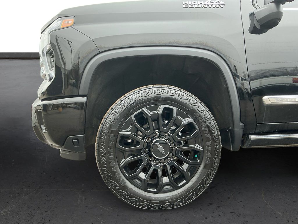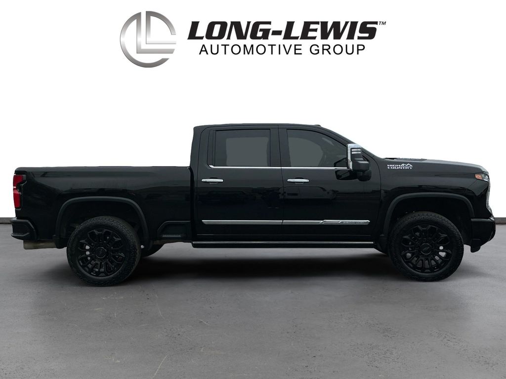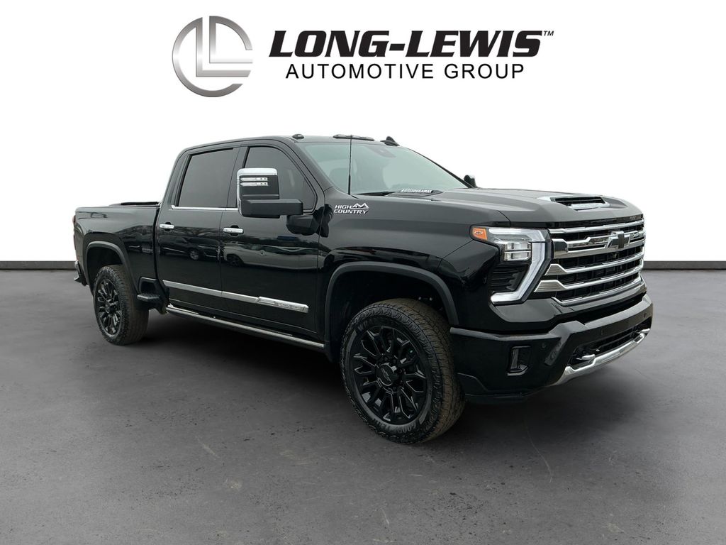 2025 Chevrolet Silverado 2500HD High Country Black High Country 4WD 10-Speed Automatic Duramax 6.6L V8 Turbodiesel 10-Speed Automatic, 4WD, Jet Black Leather, 10-Way Power Driver Seat Adjuster with Lumbar, 10-Way Power Passenger Seat Adjuster with Lumbar, 120-Volt Bed Mounted Power Outlet, 120-Volt Interior Power Outlet, 15" Diagonal Multicolor Head-Up Display, 170 Amp Alternator, 1st and 2nd Row All-Weather Floor Liners, 22" Gloss Black Aluminum Wheels, 220 Amp Alternator, 4-Wheel Disc Brakes, 6" Rectangular Chromed Tubular Assist Steps, 7 Speakers, 720 Cold-Cranking Amps Heavy-Duty Battery, ABS brakes, Air Conditioning, Alloy wheels, AM/FM radio: SiriusXM with 360L, Apple CarPlay/Android Auto, Auto High-beam Headlights, Auto-dimming door mirrors, Auto-Dimming Inside Rear-View Mirror, Auto-dimming Rear-View mirror, Automatic temperature control, Bed View Camera with Two Trailer Camera Provisions, Black Chevytec Spray-on Bedliner, Black Name Plates, Black Tailgate Lettering, Bluetooth® For Phone, Bodyside moldings, BOSE Premium 7-Speaker Sound System, Brake assist, Bumpers: body-color, Chevrolet Connected Access Capable, Chrome Door Handles, Chrome Mirror Caps, Color-Keyed Carpeting Floor Covering, Compass, Dark Essentials Package, Deep-Tinted Glass, Delay-off headlights, Driver door bin, Driver Memory, Driver vanity mirror, Dual front impact airbags, Dual front side impact airbags, Durabed Pickup Bed, Electric Rear-Window Defogger, Electronic Stability Control, Emergency communication system: OnStar, Engine Block Heater, Exhaust Brake, EZ Lift Power Lock and Release Tailgate, Floor-Mounted Center Console, Front anti-roll bar, Front Black Bowtie Emblem, Front Bucket Seats, Front Carpeted Floor Mats, Front Center Armrest, Front Chrome Recovery Hooks, Front dual zone A/C, Front fog lights, Front LED Fog Lamps, Front Rain-Sensing Wipers, Front reading lights, Front wheel independent suspension, Fully automatic headlights, Garage door transmitter, Genuine wood console insert, Genuine wood dashboard insert, Genuine wood door panel insert, Gooseneck/5th Wheel Prep Package, Heated 2nd Row Outboard Seats, Heated door mirrors, Heated Driver and Front Outboard Passenger Seating, Heated front seats, Heated rear seats, Heated Steering Wheel, Heated steering wheel, High Country Premium Package, Hill Descent Control, Hitch Guidance with Hitch View, Illuminated entry, in-Vehicle Trailering App System, Keyless Open and Start, LED Cargo Area Lighting, LED Smoked Amber Roof Marker Lamps, Low tire pressure warning, Manual Tilt and Telescoping Steering Column, Memory seat, Multi-Flex Tailgate, Occupant sensing airbag, Off-Road Suspension, OnStar Services Capable, Outside temperature display, Overhead airbag, Overhead console, Panic alarm, Passenger door bin, Passenger vanity mirror, Perforated Leather Seat Trim, Polished Exhaust Tip, Power Door Locks, Power door mirrors, Power driver seat, Power Front Windows with Driver Express Up/Down, Power Front Windows with Passenger Express Up/Down, Power passenger seat, Power Rear Windows with Express Down, Power Sliding Rear Window with Defogger, Power steering, Power Sunroof, Power Up/Down Tailgate Function with Power Lock and Release, Power windows, Power-Retractable Assist Steps, Preferred Equipment Group 3LZ, Premium audio system: Chevrolet Infotainment 3 Premium, Push Button Start, Radio: Chevrolet Infotainment 3 Premium System, Rain sensing wipers, Rear Camera Mirror, Rear Carpeted Floor Mats, Rear Cross Traffic Alert, Rear reading lights, Rear seat center armrest, Rear step bumper, Rear Wheelhouse Liners, Rear window defroster, Remote keyless entry, Remote Vehicle Starter System, Security system, SiriusXM with 360L Trial Subscription, Speed control, Speed-sensing steering, Split folding rear seat, Standard Tailgate, Steering Wheel Audio Controls, Steering wheel mounted audio controls, Suspension Package, Tachometer, Technology Package, Telescoping steering wheel, Tilt steering wheel, Traction cont