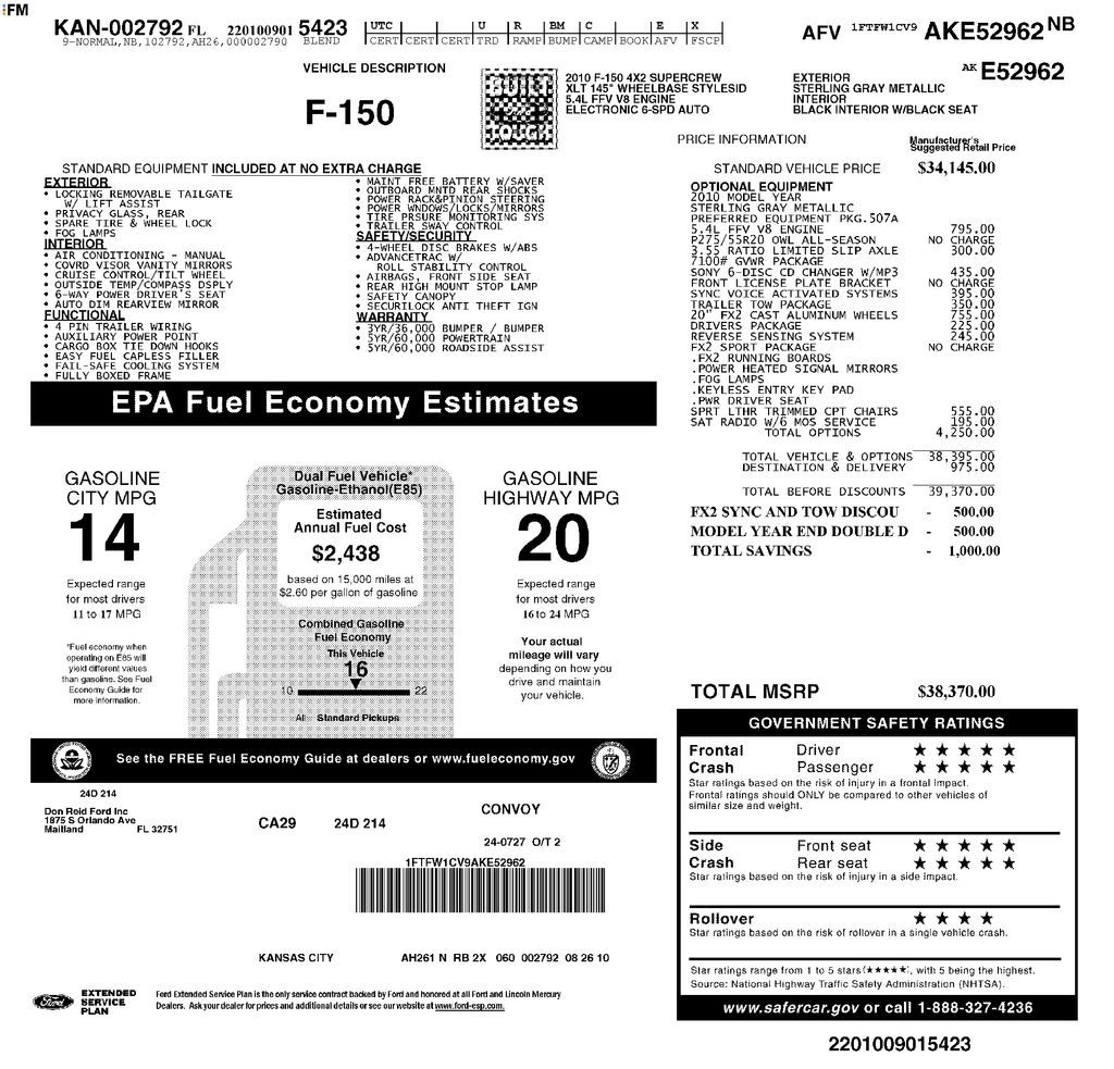 2010 Ford F-150 Truck V8 EFI 24V FFV