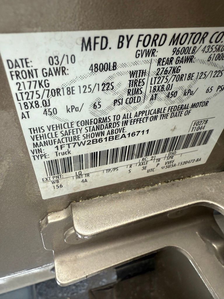 2011 Ford F-250SD Lariat Pale Adobe Metallic Lariat 4WD TorqShift 6-Speed Automatic 6.2L V8 EFI SOHC 16V Flex Fuel 4WD, 4-Wheel Disc Brakes, 5" Chrome Tubular Step Bars, 9 Speakers, ABS brakes, Adjustable pedals, Air Conditioning, Alloy wheels, AM/FM radio: SIRIUS, Auto-dimming Rear-View mirror, Automatic temperature control, Brake assist, Bumpers: chrome, CD player, Colored Front & Rear Rancho Branded Shocks, Compass, Delay-off headlights, Driver door bin, Driver vanity mirror, Dual front impact airbags, Dual front side impact airbags, Electronic Stability Control, Front anti-roll bar, Front Bucket Seats, Front Center Armrest, Front dual zone A/C, Front fog lights, Front reading lights, Fully automatic headlights, FX4 Off-Road Package, GVWR: 10,000 lb Payload Package, Heated door mirrors, Hill Descent Control, Illuminated entry, Lariat Interior Package, Leather steering wheel, Low tire pressure warning, Memory Power Adjustable Pedals, Memory Power Heated/Cooled Driver Seat, Memory PowerScope Trailer-Tow Mirrors, Order Code 608A, Outside temperature display, Overhead airbag, Overhead console, Panic alarm, Passenger door bin, Passenger vanity mirror, Power door mirrors, Power driver seat, Power Heated/Cooled Passenger Seat, Power passenger seat, Power steering, Power windows, Premium Leather Seating Surfaces 40/Console/40, Radio data system, Radio: Premium AM/FM Stereo w/Single-CD/MP3 Player, Rear Parking Sensors, Rear reading lights, Rear seat center armrest, Rear step bumper, Rear-View Camera, Remote keyless entry, Remote Start System, Roof Clearance Lights, Satellite Radio, Security system, Speed control, Split folding rear seat, Steering wheel mounted audio controls, Tachometer, Tailgate Step & Handle w/TailGate Assist, Telescoping steering wheel, Tilt steering wheel, Traction control, Trip computer, Turn signal indicator mirrors, Variably intermittent wipers, 4WD.