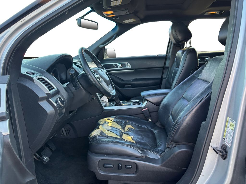 2014 Ford Explorer XLT Ingot Silver XLT FWD 6-Speed Automatic with Select-Shift 3.5L 6-Cylinder SMPI DOHC 18" Painted Aluminum Wheels, 20" Polished Aluminum Wheels, 2nd Row Bucket Seats, 3.39 Axle Ratio, 3rd row seats: split-bench, 4-Wheel Disc Brakes, 4.7 Pin Wiring Harness, 6 Speakers, ABS brakes, Air Conditioning, All Weather Floor Mats, Alloy wheels, AM/FM radio: SiriusXM, Auto-Dimming Rear-View Mirror, Bumpers: body-color, CD player, Comfort Package, Compass, Delay-off headlights, Driver Connect Package, Driver door bin, Driver vanity mirror, Dual front impact airbags, Dual front side impact airbags, Dual Zone Electronic Temperature, Dual-Panel Moonroof, Electronic Stability Control, Engine Oil Cooler, Equipment Group 202A, Four wheel independent suspension, Front anti-roll bar, Front Bucket Seats, Front Center Armrest, Front fog lights, Front reading lights, Fully automatic headlights, Heated door mirrors, Illuminated entry, Knee airbag, Leather-Trimmed Heated Bucket Seats, Low tire pressure warning, Occupant sensing airbag, Outside temperature display, Overhead airbag, Overhead console, Panic alarm, Passenger door bin, Passenger vanity mirror, Power door mirrors, Power driver seat, Power Liftgate, Power passenger seat, Power steering, Power windows, Radio data system, Radio: AM/FM Stereo w/Single CD w/Premium Audio, Radio: AM/FM Stereo w/Single CD/MP3 Capable, Rear air conditioning, Rear anti-roll bar, Rear Parking Sensors, Rear reading lights, Rear window defroster, Rear window wiper, Rear-View Camera, Remote keyless entry, Roof rack: rails only, Security system, Speed control, Speed-sensing steering, Speed-Sensitive Wipers, Split folding rear seat, Spoiler, Steering wheel mounted audio controls, SYNC, SYNC w/MyFord Communications/Entertainment System, SYNC w/MyFord Touch, Tachometer, Telescoping steering wheel, Tilt steering wheel, Traction control, Trailer Tow Package (Class III), Trip computer, Turn signal indicator mirrors, Unique Cloth Bucket Seats, Variably intermittent wipers, Voice-Activated Navigation System.