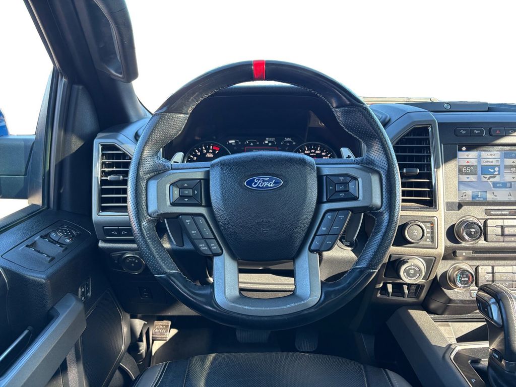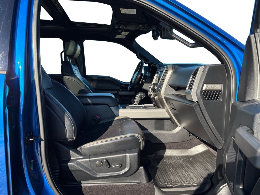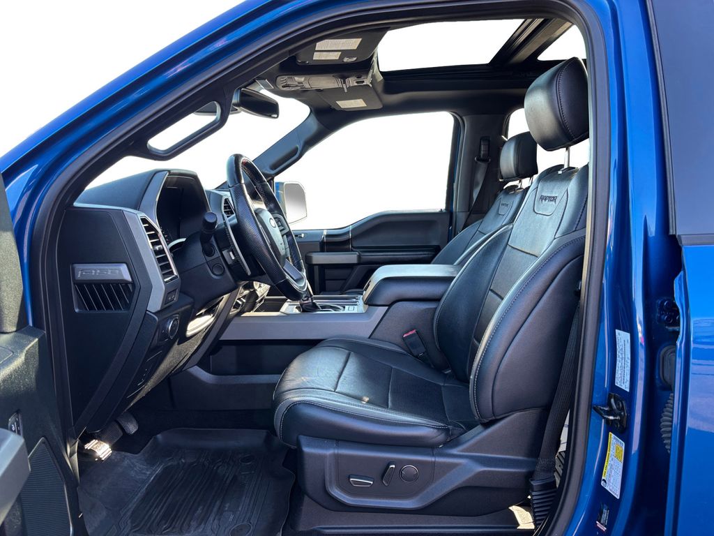 2018 Ford F-150 Raptor Lightning Blue Raptor 4WD 10-Speed Automatic 3.5L V6 EcoBoost 4WD, 10-Way Power Driver & Passenger Seats, 17" Cast Aluminum Wheels, 17" Forged Aluminum Bead-Lock Capable Wheels, 360 Degree Camera, 4-Wheel Disc Brakes, 4.10 Front Axle w/Torsen Differential, 7 Speakers, 8-Way Power Driver's Seat w/Power Lumbar, 8" Productivity Screen, ABS brakes, Adaptive Cruise Control w/Collision Mitigation, Advanced Security Pack, Air Conditioning, Alloy wheels, AM/FM radio: SiriusXM, Ambient Lighting - Ice Blue Color Only, Auto High Beam, Auto-dimming Rear-View mirror, BLIS Blind Spot Information System, Brake assist, CD player, Compass, Delay-off headlights, Driver door bin, Driver vanity mirror, Dual front impact airbags, Dual front side impact airbags, Dual-Zone Electronic Automatic Temperature Control, Electronic Locking w/4.10 Axle Ratio, Electronic Stability Control, Emergency communication system: 911 Assist, Equipment Group 802A Luxury, Exterior Parking Camera Rear, Front anti-roll bar, Front Bucket Seats, Front Center Armrest, Front fog lights, Front reading lights, Front wheel independent suspension, Fully automatic headlights, GVWR: 7,050 lbs Payload Package, Heated Leather 40/Console/40 Front Seats, Heated Steering Wheel, Illuminated entry, Inflatable Rear Safety Belts, Integrated Trailer Brake Controller, Intelligent Access w/Push-Button Start, Lane-Keeping System, Leather steering wheel, LED Box Lighting, LED Sideview Mirror Spotlights, Low tire pressure warning, Memory System (Seat, Pedal, Exterior Mirror), Occupant sensing airbag, Outside temperature display, Overhead airbag, Overhead console, Panic alarm, Passenger door bin, Passenger vanity mirror, Power door mirrors, Power driver seat, Power Glass Heated Sideview Mirrors, Power steering, Power Tilt/Telescoping Steering Column w/Memory, Power windows, Power-Adjustable Pedals, Power-Sliding Rear Window, Pro Trailer Backup Assist, Radio data system, Radio: B&O Play Premium Audio System, Raptor Technology Package, Rear Parking Sensors, Rear reading lights, Rear step bumper, Rear window defroster, Remote keyless entry, Remote Start System w/Remote Tailgate Release, Security system, Speed control, Speed-sensing steering, Split folding rear seat, Spray-In Bedliner (Pre-Installed), Steering wheel mounted audio controls, SYNC, SYNC 3, SYNC Connect, Tachometer, Tailgate Applique FORD, Tailgate Step w/Tailgate Lift Assist, Telescoping steering wheel, Tilt steering wheel, Traction control, Trip computer, Twin Panel Moonroof, Unique Cloth Trim Seats, Universal Garage Door Opener, Variably intermittent wipers, Voice-Activated Touchscreen Navigation System, 4WD.