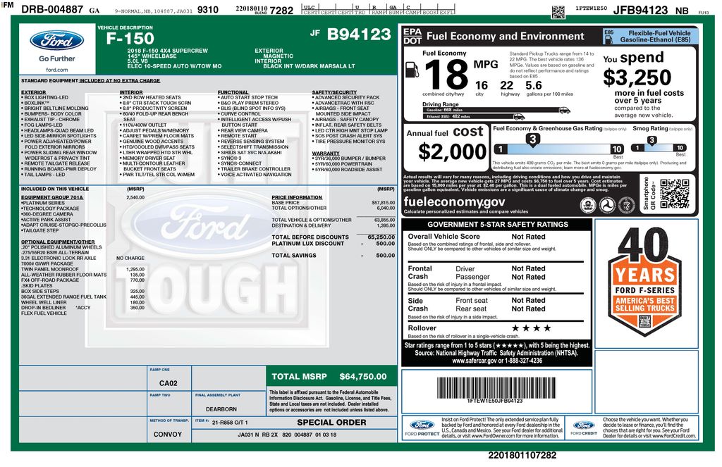 2018 Ford F-150 **Here at Long-Lewis we believe in being transparent. We have no Doc fees, or any other hidden fees. We are a one price store and give our best price up front and they are clearly marked on all our inventory.** Gray 4WD 10-Speed Automatic 5.0L V8 4WD.