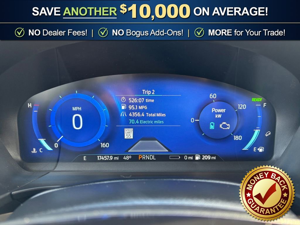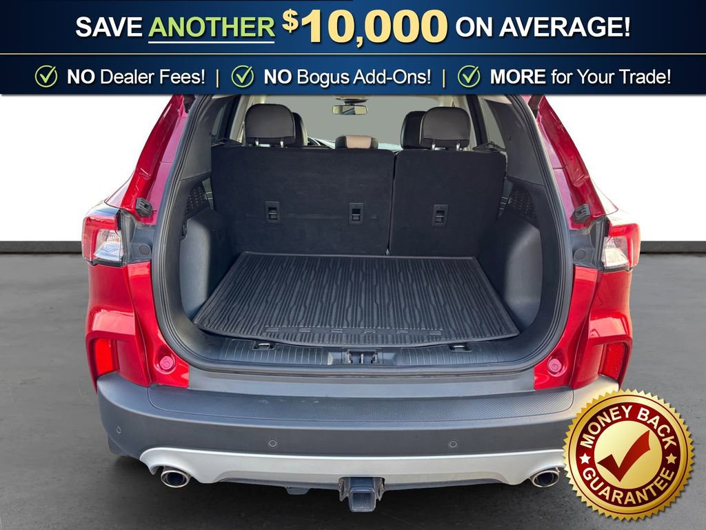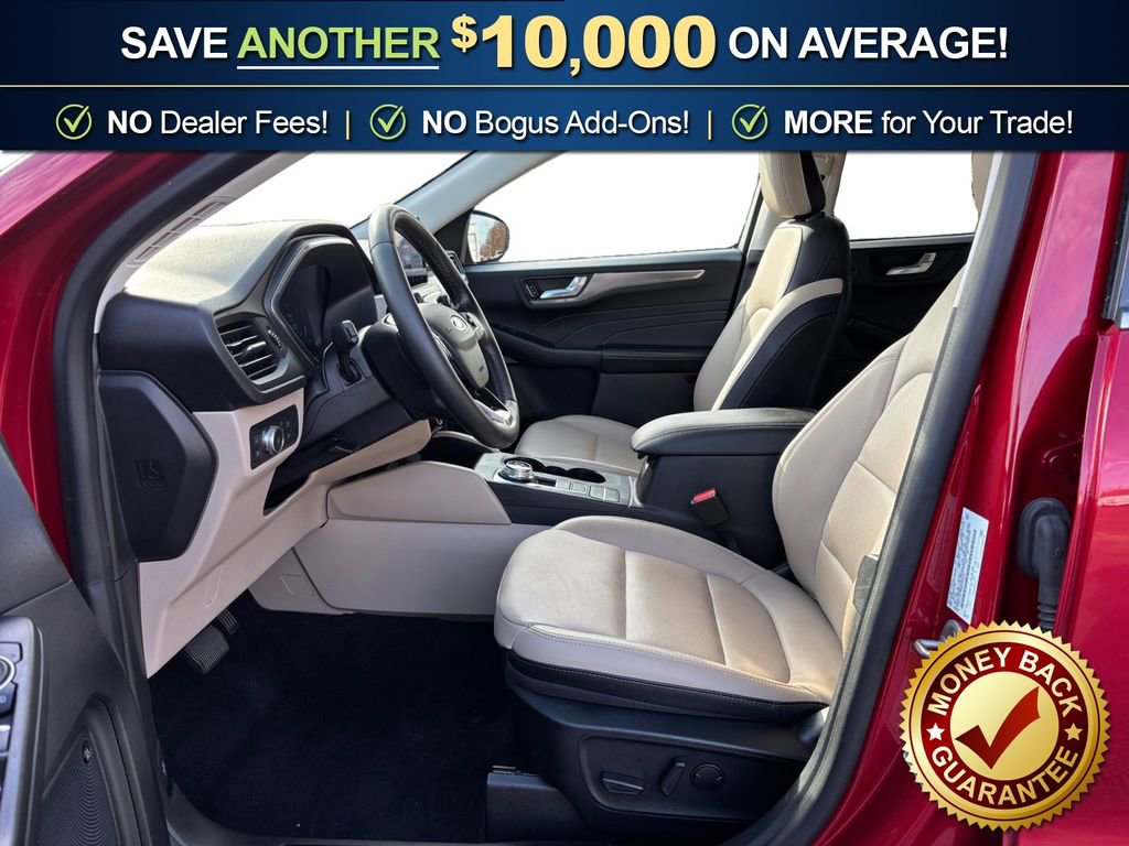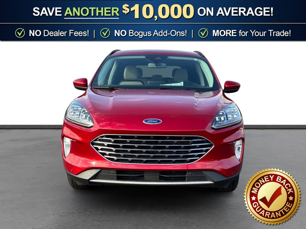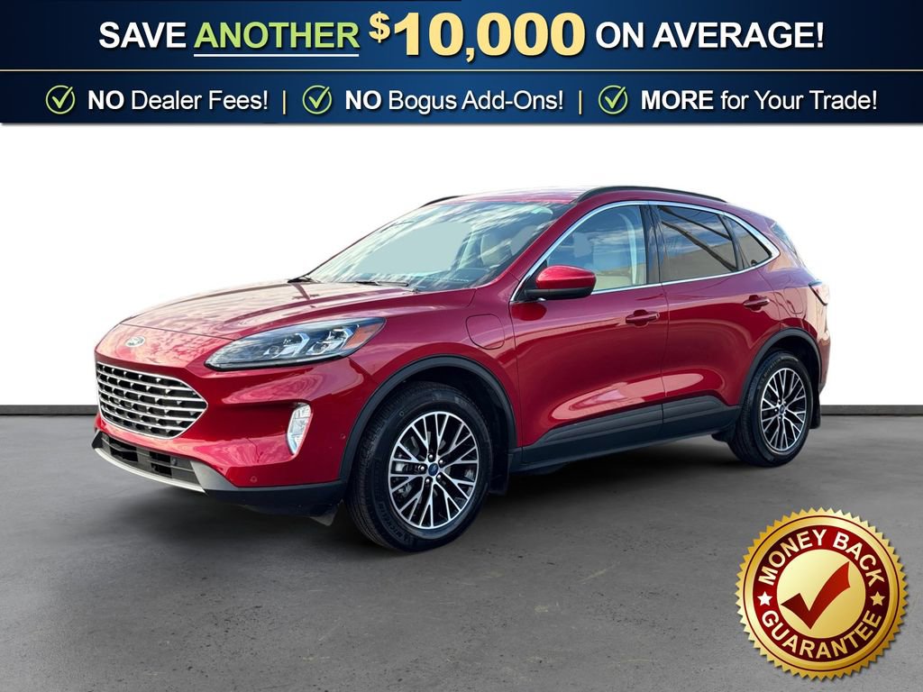 2.5L iVCT, 10 Speakers, 2.91 Axle Ratio, 4-Wheel Disc Brakes, ABS brakes, Air Conditioning, Alloy wheels, AM/FM radio: SiriusXM, Auto High-beam Headlights, Auto-dimming Rear-View mirror, Automatic temperature control, Brake assist, Bumpers: body-color, Cargo Mat, Class II Trailer Tow Package, Compass, Delay-off headlights, Driver door bin, Driver vanity mirror, Dual front impact airbags, Dual front side impact airbags, Electronic Stability Control, Emergency communication system: SYNC 3 911 Assist, Equipment Group 650A, Exterior Parking Camera Rear, FordPass Connect, Four wheel independent suspension, Front anti-roll bar, Front Bucket Seats, Front Center Armrest, Front dual zone A/C, Front fog lights, Front reading lights, Fully automatic headlights, Garage door transmitter, Heated ActiveX Front Sport Contour Bucket Seats, Heated door mirrors, Heated front seats, Heated steering wheel, Illuminated entry, Knee airbag, Low tire pressure warning, Memory seat, Navigation System, Occupant sensing airbag, Outside temperature display, Overhead airbag, Overhead console, Panic alarm, Passenger door bin, Passenger vanity mirror, Power door mirrors, Power driver seat, Power Liftgate, Power passenger seat, Power steering, Power windows, Radio data system, Radio: B&O Sound System by Bang & Olufsen, Rain sensing wipers, Rear anti-roll bar, Rear reading lights, Rear seat center armrest, Rear window defroster, Rear window wiper, Remote keyless entry, Roof rack: rails only, Security system, Speed control, Speed-sensing steering, Speed-Sensitive Wipers, Splash Guards, Split folding rear seat, Spoiler, Steering wheel mounted audio controls, SYNC 3 Communications & Entertainment System, Telescoping steering wheel, Tilt steering wheel, Traction control, Trip computer, Variably intermittent wipers, Voice-Activated Touchscreen Navigation System, Wheels: 18 Machined-Face Ebony-Painted Aluminum, 2.5L iVCT.2021 Ford Escape Plug-In Hybrid Titanium FWD eCVT 2.5L iVCT Red Metallic