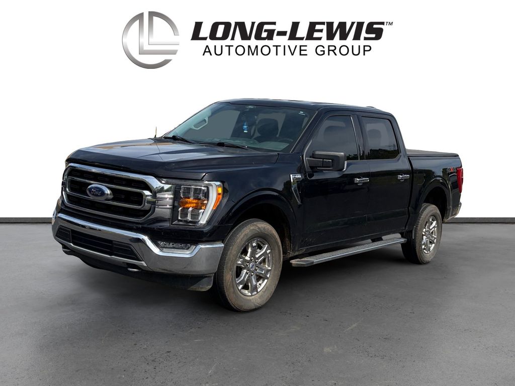 2021 Ford F-150 XLT Agate Black Metallic XLT 4WD 10-Speed Automatic 5.0L V8 4WD, 2-Bar Style Grille w/Chrome 2 Minor Bars, 3.31 Axle Ratio, 4-Wheel Disc Brakes, 6 Speakers, ABS brakes, Air Conditioning, Alloy wheels, AM/FM radio, Auto High-beam Headlights, Auto-Dimming Rear-View Mirror, BoxLink, Brake assist, Bumpers: chrome, Chrome Door & Tailgate Handles w/Body-Color Bezel, Chrome Single-Tip Exhaust, Chrome Step Bars, Class IV Trailer Hitch Receiver, Cloth 40/20/40 Front Seat, Cloth 40/Console/40 Front Seats, Compass, Connected Built-In Navigation, Delay-off headlights, Driver door bin, Driver vanity mirror, Dual front impact airbags, Dual front side impact airbags, Electronic Stability Control, Emergency communication system: SYNC 4 911 Assist, Equipment Group 302A High, Exterior Parking Camera Rear, Front anti-roll bar, Front Center Armrest w/Storage, Front fog lights, Front License Plate Bracket, Front reading lights, Front wheel independent suspension, Fully automatic headlights, Heated door mirrors, Illuminated entry, Integrated Trailer Brake Controller, LED Box Lighting w/Zone Lighting, LED Sideview Mirror Spotlights, Low tire pressure warning, Occupant sensing airbag, Onboard 400W Outlet, Outside temperature display, Overhead airbag, Overhead console, Panic alarm, Passenger door bin, Passenger vanity mirror, Power door mirrors, Power Glass Heated Sideview Mirrors, Power steering, Power windows, Pro Trailer Backup Assist, Radio data system, Radio: AM/FM SiriusXM w/360L, Radio: AM/FM Stereo w/6 Speakers, Rear reading lights, Rear step bumper, Rear window defroster, Remote keyless entry, Remote Start System w/Remote Tailgate Release, Security system, Speed control, Speed-sensing steering, Split folding rear seat, Steering wheel mounted audio controls, SYNC 4, SYNC 4 w/Enhanced Voice Recognition, Tachometer, Telescoping steering wheel, Tilt steering wheel, Traction control, Trailer Tow Package, Trip computer, Variably intermittent wipers, Voltmeter, Wheels: 17" Silver Painted Aluminum, Wheels: 18" Chrome-Like PVD, XLT Chrome Appearance Package, 4WD.