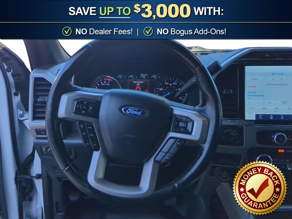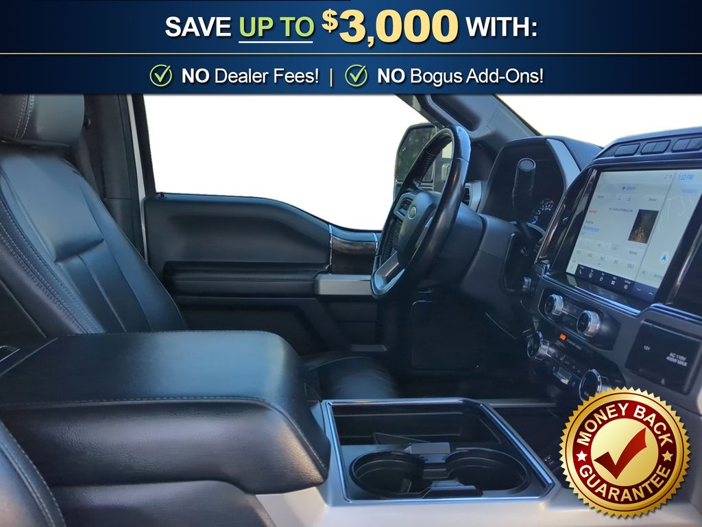4WD, 10 Speakers, 4-Wheel Disc Brakes, 5th Wheel/Gooseneck Hitch Prep Package, ABS brakes, Adjustable pedals, Air Conditioning, Alloy wheels, AM/FM radio: SiriusXM with 360L, Ambient Lighting - Fixed Color, Auto High-beam Headlights, Auto-dimming Rear-View mirror, Automatic temperature control, Brake assist, Bumpers: chrome, Compass, Delay-off headlights, Driver door bin, Driver vanity mirror, Dual front impact airbags, Dual front side impact airbags, Easy Entry®/Exit Memory Driver's Seat Feature, Electronic Stability Control, Emergency communication system: SYNC 4 911 Assist, Exterior Parking Camera Rear, Flow-Through Console, Front anti-roll bar, Front Bucket Seats, Front Center Armrest, Front dual zone A/C, Front fog lights, Front Leather Seating Surfaces 40/Console/40, Front reading lights, Fully automatic headlights, FX4 Off-Road Package, GVWR: 10,000 lb Payload Package, Heated door mirrors, Hill Descent Control, Illuminated entry, Intelligent Access w/Push-Button Start, Lane Departure Warning System, Lariat Ultimate Package, Leather steering wheel, LED Box Lighting, Low tire pressure warning, Memory Power-Adjustable Pedals, Navigation system: Connected Navigation, Off-Road Specifically Tuned Shock Absorbers, Order Code 608A, Outside temperature display, Overhead airbag, Overhead console, Panic alarm, Passenger door bin, Passenger vanity mirror, Power door mirrors, Power driver seat, Power Heated/Ventilated Driver Seat w/Memory, Power Heated/Ventilated Passenger Seat, Power passenger seat, Power steering, Power Telescoping/Tilt Steering Wheel/Column, Power windows, Power-Deployable Running Boards, PowerScope Trailer Tow Mirrors w/Heat, PowerScope Trailer Tow Mirrors w/Memory, Pro Trailer Backup Assist, Radio data system, Radio: B&O Sound System by Bang & Olufsen, Rear Parking Sensors, Rear reading lights, Rear seat center armrest, Rear step bumper, Rear window defroster, Remote keyless entry, Remote Start System, Remote Tailgate Release, Security system, SiriusXM Radio w/360L, Speed control, Split folding rear seat, Steering wheel mounted audio controls, SYNC 4 w/Enhanced Voice Recognition, Tachometer, Tailgate Step & Handle, Telescoping steering wheel, Tilt steering wheel, Traction control, Trip computer, Turn signal indicator mirrors, Twin Panel Power Moonroof, Ultimate Trailer Tow Camera System, Unique FX4 Off-Road Box Decal, Variably intermittent wipers, Wheels: 18" Bright Machined Cast Aluminum, Wheels: 20" Bright Machined Cast Aluminum, 4WD.