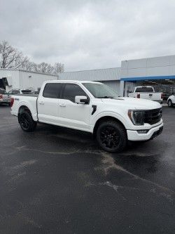 2023 Ford F-150 Lariat Star White Metallic Tri-Coat Lariat 4WD 10-Speed Automatic 3.5L V6 EcoBoost 4WD, 360 Degree Camera, 4-Wheel Disc Brakes, 8 Speakers, ABS brakes, Accent-Color Angular Step Bars, Adjustable pedals, Air Conditioning, Alloy wheels, AM/FM radio: SiriusXM with 360L, Auto High-beam Headlights, Auto Start-Stop Removal (DISC), Auto-dimming door mirrors, Auto-dimming Rear-View mirror, Automatic temperature control, Bed Utility Package, Body-Color Front & Rear Bumpers, Box Side Decals, BoxLink, Brake assist, Bumpers: chrome, Chrome Single-Tip Exhaust, Chrome wheels, Class IV Trailer Hitch Receiver, Compass, Connected Built-In Navigation, Dark 2-Bar & 1 Minor Bar Style Grille, Delay-off headlights, Driver door bin, Driver vanity mirror, Dual front impact airbags, Dual front side impact airbags, Electronic Stability Control, Emergency communication system: SYNC 4 911 Assist, Equipment Group 502A High, Evasive Steering Assist, Extended Range 36 Gallon Fuel Tank, Exterior Parking Camera Rear, Ford Co-Pilot360 Assist 2.0, Front anti-roll bar, Front Bucket Seats, Front Center Armrest, Front dual zone A/C, Front fog lights, Front reading lights, Front wheel independent suspension, Fully automatic headlights, FX4 Off-Road Package, Garage door transmitter, Heated door mirrors, Heated front seats, Heated steering wheel, Illuminated entry, Inclination/Intrusion Sensor Removal, Integrated Trailer Brake Controller, Intelligent Adaptive Cruise Control w/Stop & Go, Interior Work Surface, Intersection Assist, Lariat Sport Appearance Package, Leather-Trimmed Bucket Seats, LED Box Lighting, LED Sideview Mirror Spotlights, Low tire pressure warning, Memory seat, Occupant sensing airbag, Outside temperature display, Overhead airbag, Overhead console, Panic alarm, Partitioned Lockable Fold-Flat Storage, Passenger door bin, Passenger vanity mirror, Pedal memory, Power door mirrors, Power driver seat, Power passenger seat, Power steering, Power Tailgate, Power windows, Pro Trailer Backup Assist & Pro Trailer Hitch Assist, Radio data system, Radio: B&O Sound System by Bang & Olufsen, Rear reading lights, Rear seat center armrest, Rear step bumper, Rear window defroster, Remote keyless entry, Security system, Speed control, Speed Sign Recognition, Speed-sensing steering, Split folding rear seat, Steering Wheel Heat Removal (DISC), Steering wheel mounted audio controls, SYNC 4 w/Enhanced Voice Recognition, Tachometer, Tailgate Step w/Tailgate Work Surface, Telescoping steering wheel, Tilt steering wheel, Tough Bed Spray-In Bedliner, Traction control, Trailer Tow Package, Tray Style Floor Liner (47W), Trip computer, Turn signal indicator mirrors, Twin Panel Moonroof, Variably intermittent wipers, Ventilated front seats, Voltmeter, Wheels: 18" Chrome-Like PVD, Wireless Charging Pad, 4WD.