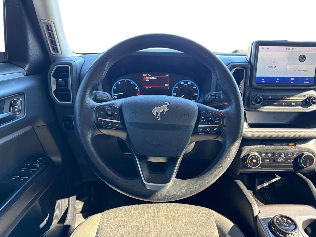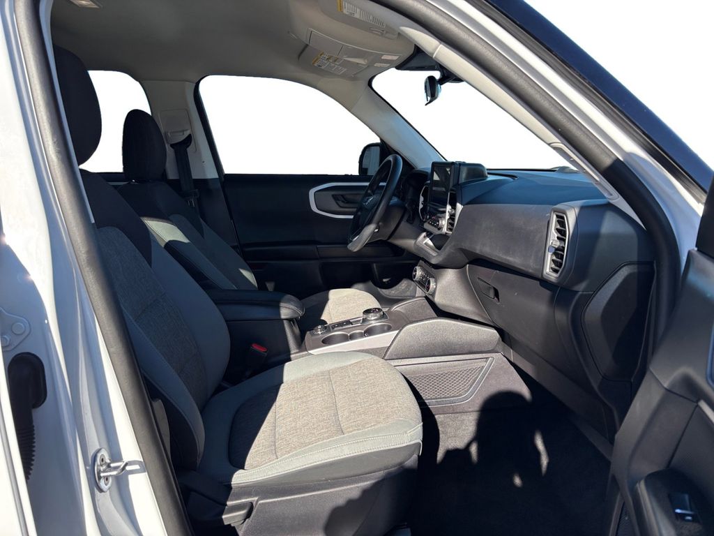 2024 Ford Bronco Sport Big Bend Oxford White Big Bend 4WD 8-Speed Automatic 1.5L EcoBoost 3.80 Axle Ratio, 4-Wheel Disc Brakes, 6 Speakers, ABS brakes, Air Conditioning, Alloy wheels, AM/FM radio: SiriusXM, AM/FM Stereo, Auto High-beam Headlights, Automatic temperature control, Brake assist, Compass, Delay-off headlights, Driver door bin, Driver vanity mirror, Dual front impact airbags, Dual front side impact airbags, Electronic Stability Control, Emergency communication system: SYNC 3 911 Assist, Equipment Group 200A, Four wheel independent suspension, Front anti-roll bar, Front Bucket Seats, Front Center Armrest, Front Driver/Passenger Seat Back Map Pockets, Front License Plate Bracket, Front reading lights, Fully automatic headlights, Heated door mirrors, Illuminated entry, Knee airbag, Low tire pressure warning, Occupant sensing airbag, Outside temperature display, Overhead airbag, Overhead console, Panic alarm, Passenger door bin, Passenger vanity mirror, Power door mirrors, Power steering, Power windows, Premium Trimmed Front Sport Contour Bucket Seats, Radio data system, Rear anti-roll bar, Rear reading lights, Rear seat center armrest, Rear window defroster, Rear window wiper, Remote keyless entry, Security system, SiriusXM, Speed control, Speed-sensing steering, Speed-Sensitive Wipers, Split folding rear seat, Steering wheel mounted audio controls, SYNC 3 Communications & Entertainment System, Tachometer, Telescoping steering wheel, Tilt steering wheel, Traction control, Trip computer, Unique Cloth Front Bucket Seats, Variably intermittent wipers, Wheels: 17" Carbonized Gray-Painted Aluminum.