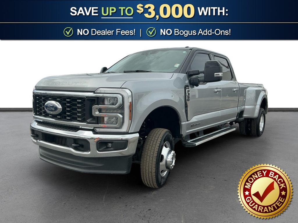 2024 Ford F-350SD Lariat DRW Silver Metallic Lariat DRW 4WD 10-Speed Automatic Power Stroke 6.7L V8 DI 32V OHV Turbodiesel 4WD, 17" Forged Polished Aluminum Wheels, 4-Wheel Disc Brakes, 5th Wheel/Gooseneck Hitch Prep Package, ABS brakes, Air Conditioning, Brake assist, Compass, Delay-off headlights, Dual front impact airbags, Dual front side impact airbags, Dual rear wheels, Electronic Stability Control, Emergency communication system: SYNC 4 911 Assist, Exterior Parking Camera Rear, Front anti-roll bar, Front reading lights, Fully automatic headlights, FX4 Off-Road Package, GVWR: 14,000 lb Payload Package, Heated door mirrors, Hill Descent Control, Illuminated entry, Low tire pressure warning, Off-Road Specifically Tuned Shock Absorbers, Outside temperature display, Overhead airbag, Overhead console, Panic alarm, Passenger vanity mirror, Power door mirrors, Power steering, Power windows, Rear anti-roll bar, Rear reading lights, Rear step bumper, Remote keyless entry, Retractable Bed Side-Step (Pre-Installed), Retractable Rear Corner Bed Step (Pre-Installed), Speed control, Split folding rear seat, Steering wheel mounted audio controls, Tachometer, Telescoping steering wheel, Tilt steering wheel, Tough Bed Spray-In Bedliner, Traction control, Trip computer, Turn signal indicator mirrors, Unique FX4 Off-Road Box Decal, Variably intermittent wipers, 4WD.