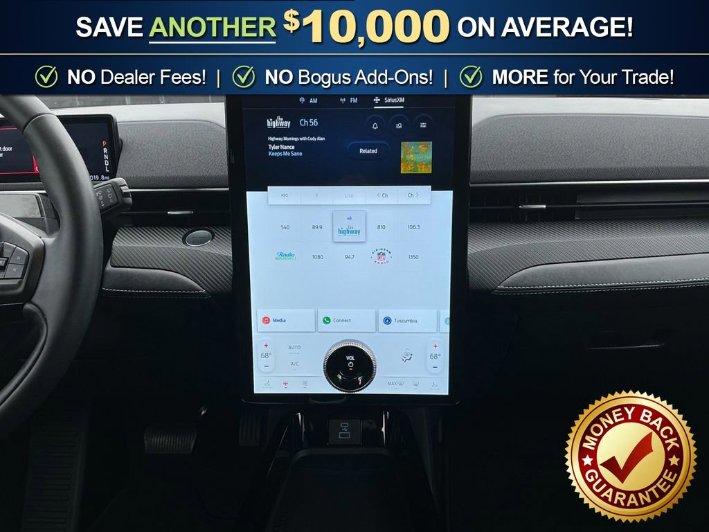 4-Wheel Disc Brakes, 6 Speakers, ABS brakes, ActiveX Bucket Seats, Air Conditioning, Alloy wheels, AM/FM radio: SiriusXM with 360L, AM/FM Stereo, Apple CarPlay/Android Auto, Auto High-beam Headlights, Auto-dimming Rear-View mirror, Automatic temperature control, Axle Ratio: 9.791, Brake assist, Bumpers: body-color, Comfort Package Lite, Compass, Delay-off headlights, Driver door bin, Driver vanity mirror, Dual front impact airbags, Dual front side impact airbags, Electronic Stability Control, Emergency communication system: 911 Assist, Equipment Group 100A, Exterior Parking Camera Rear, Four wheel independent suspension, Front anti-roll bar, Front Bucket Seats, Front Center Armrest, Front dual zone A/C, Front License Plate Bracket, Front reading lights, Fully automatic headlights, Garage door transmitter, Heated door mirrors, Heated Front Row Seats, Heated Steering Wheel, Illuminated entry, Knee airbag, Low tire pressure warning, Memory Driver's Seat & Sideview Mirrors, Mobile Power Cord (120V/240V), Navigation system: Connected Navigation, Occupant sensing airbag, Outside temperature display, Overhead airbag, Overhead console, Panic alarm, Passenger door bin, Passenger vanity mirror, Power door mirrors, Power driver seat, Power steering, Power windows, Radio data system, Rain sensing wipers, Rear anti-roll bar, Rear seat center armrest, Rear side impact airbag, Rear window defroster, Rear window wiper, Remote keyless entry, Security system, SiriusXM Radio w/360L, Speed control, Speed-sensing steering, Speed-Sensitive Wipers, Split folding rear seat, Spoiler, Steering wheel mounted audio controls, SYNC 4A w/Enhanced Voice Recognition, Telescoping steering wheel, Tilt steering wheel, Traction control, Trip computer, Turn signal indicator mirrors, Variably intermittent wipers, Wheels: 19 Machined-Face Aluminum.