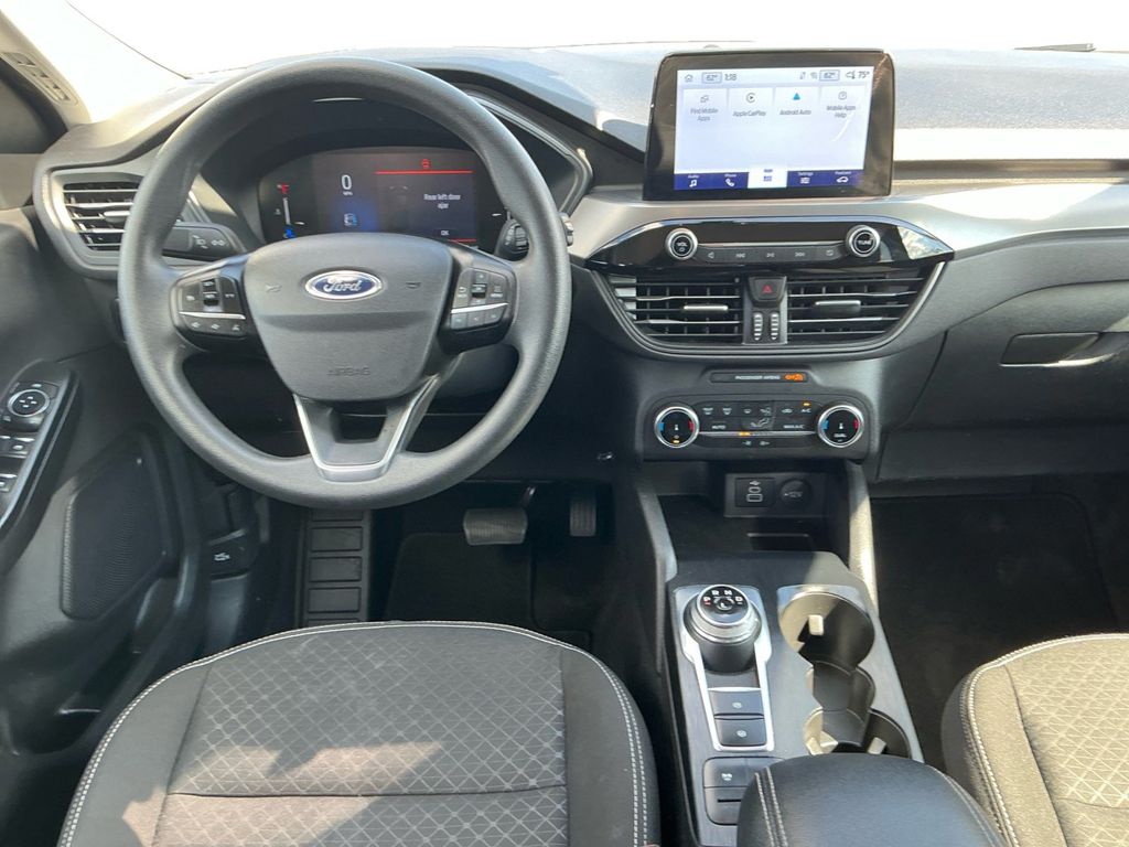 2025 Ford Escape Active Silver Metallic Active FWD 8-Speed Automatic 1.5L EcoBoost 3.81 Axle Ratio, 4-Wheel Disc Brakes, 6 Speakers, ABS brakes, Air Conditioning, Alloy wheels, AM/FM radio: SiriusXM, AM/FM Stereo, Auto High-beam Headlights, Automatic temperature control, Brake assist, Bumpers: body-color, Compass, Delay-off headlights, Driver door bin, Driver vanity mirror, Dual front impact airbags, Dual front side impact airbags, Electronic Stability Control, Emergency communication system: SYNC 4 911 Assist, Equipment Group 200A, FordPass Connect, Four wheel independent suspension, Front anti-roll bar, Front Bucket Seats, Front Center Armrest, Front dual zone A/C, Front License Plate Bracket, Front reading lights, Fully automatic headlights, Illuminated entry, Internet access capable: FordPass Connect 4G, Knee airbag, Low tire pressure warning, Occupant sensing airbag, Outside temperature display, Overhead airbag, Overhead console, Panic alarm, Passenger door bin, Passenger vanity mirror, Power door mirrors, Power steering, Power windows, Radio data system, Rear anti-roll bar, Rear reading lights, Rear seat center armrest, Rear window defroster, Rear window wiper, Remote keyless entry, Speed control, Speed-sensing steering, Speed-Sensitive Wipers, Split folding rear seat, Spoiler, Steering wheel mounted audio controls, SYNC 4, Tachometer, Telescoping steering wheel, Tilt steering wheel, Traction control, Trip computer, Unique Cloth Front Bucket Seats, Variably intermittent wipers, Wheels: 17" Shadow Silver-Painted Aluminum.