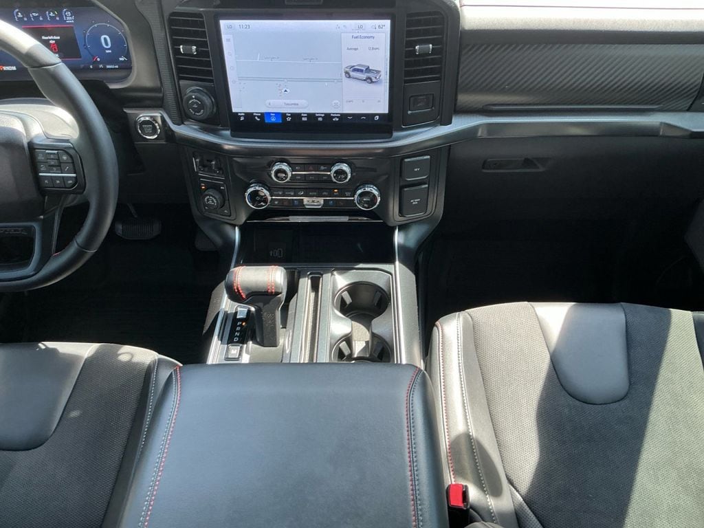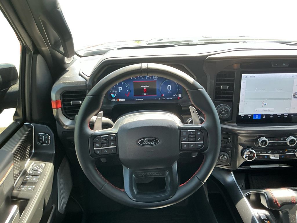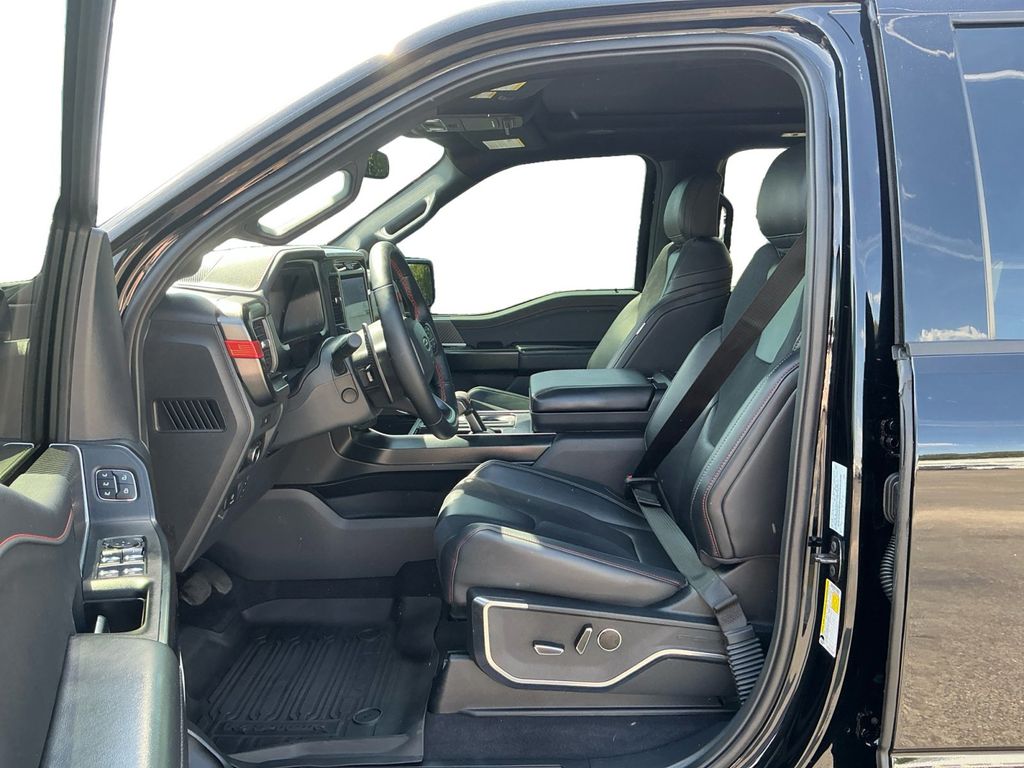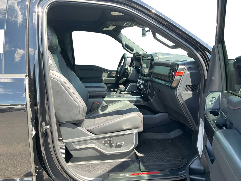 2025 Ford F-150 Raptor Agate Black Metallic Raptor 4WD 10-Speed Automatic 3.5L V6 EcoBoost 4WD, 14 Speakers, 17" Cast Aluminum Wheels, 4-Wheel Disc Brakes, ABS brakes, Adjustable pedals, Air Conditioning, Alloy wheels, AM/FM radio: SiriusXM with 360L, Auto High-beam Headlights, Auto tilt-away steering wheel, Auto-dimming door mirrors, Auto-dimming Rear-View mirror, Automatic temperature control, Brake assist, Bumpers: body-color, Carbon Fiber Interior Appliques, Compass, Delay-off headlights, Driver door bin, Driver vanity mirror, Dual front impact airbags, Dual front side impact airbags, Dual Valve Shocks, Electronic Locking w/4.10 Axle Ratio, Electronic Stability Control, Emergency communication system: SYNC 4 911 Assist, Equipment Group 802A Raptor 37, Front anti-roll bar, Front Bucket Seats, Front Center Armrest, Front dual zone A/C, Front fog lights, Front License Plate Bracket, Front reading lights, Front wheel independent suspension, Fully automatic headlights, Garage door transmitter, Heads-Up Display, Heated door mirrors, Heated front seats, Heated rear seats, Heated steering wheel, Illuminated entry, Internet access capable: FordPass Connect 5G, Lane Departure Warning System, Leather steering wheel, Leather Trimmed Seats, Low tire pressure warning, Memory seat, Modular Front Bumper, Navigation system: Connected Navigation, Occupant sensing airbag, Outside temperature display, Overhead airbag, Overhead console, Panic alarm, Passenger door bin, Passenger vanity mirror, Pedal memory, Power door mirrors, Power driver seat, Power passenger seat, Power steering, Power windows, Radio data system, Radio: B&O Unleashed Sound System by Bang & Olufsen, Rain sensing wipers, Rear reading lights, Rear step bumper, Rear window defroster, RECARO Alcantara Suede Front Seats, RECARO w/Code Orange Stitching Front Seats, Remote keyless entry, Security system, Speed control, Speed-sensing steering, Split folding rear seat, Steering wheel memory, Steering wheel mounted audio controls, SYNC 4 w/Enhanced Voice Recognition, Tachometer, Telescoping steering wheel, Tilt steering wheel, Traction control, Trip computer, Turn signal indicator mirrors, Twin Panel Moonroof, Variably intermittent wipers, Ventilated front seats, Wheels: Raptor 37 Unique 17" Cast Aluminum, 4WD.