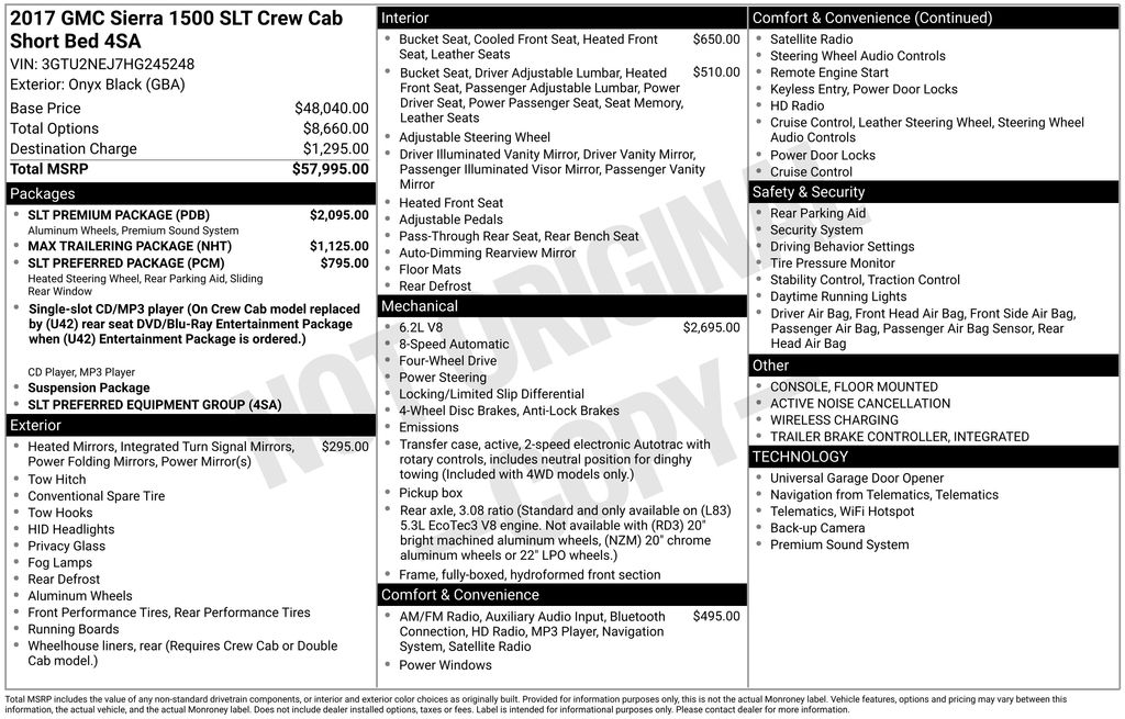 2017 GMC Sierra 1500 SLT **Here at Long-Lewis we believe in being transparent. We have no Doc fees, or any other hidden fees. We are a one price store and give our best price up front and they are clearly marked on all our inventory.** Onyx Black 4WD 8-Speed Automatic with Overdrive EcoTec3 6.2L V8 8-Speed Automatic with Overdrive, 4WD, Jet Black Leather.