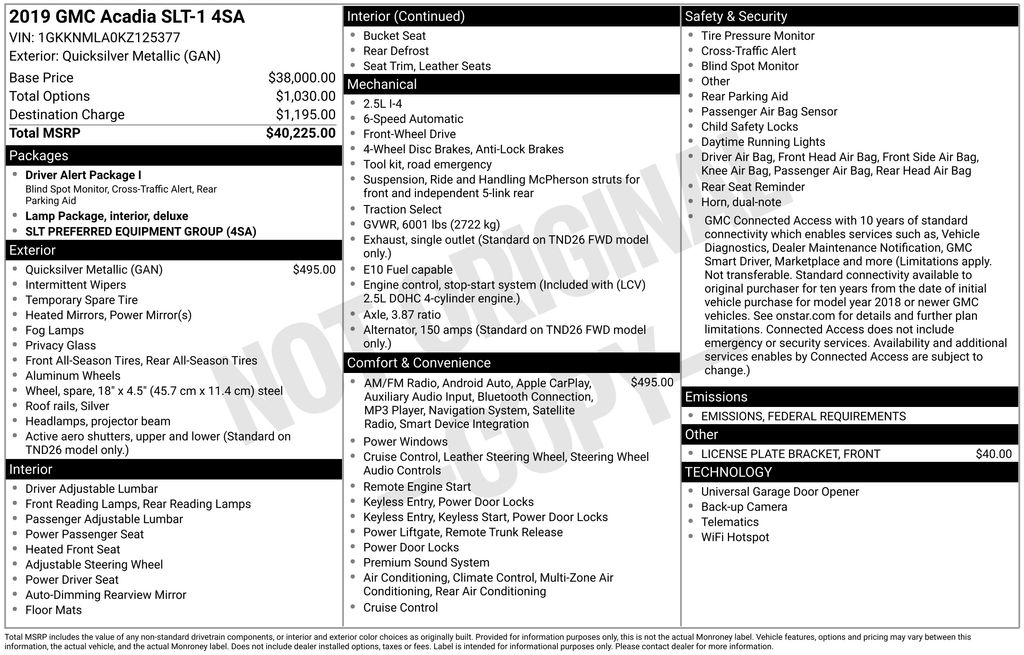 2019 GMC Acadia SLT-1 SUV 4-Cylinder DGI DOHC VVT