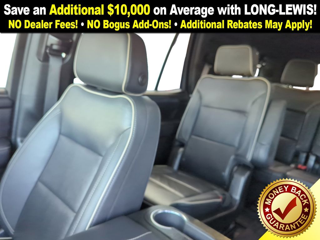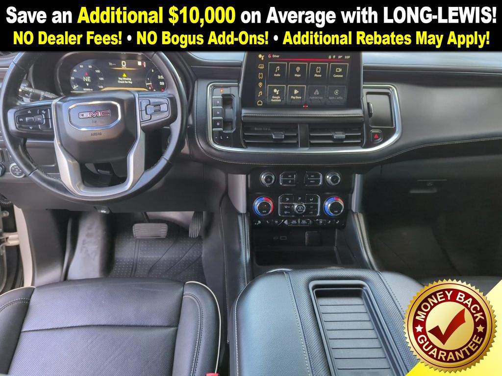 Recent Arrival! 2 Presets For Power Driver Seat, 2nd Row Manual-Folding Bucket Seats, 3.23 Rear Axle Ratio, 3rd row seats: split-bench, 4-Wheel Disc Brakes, 9 Speakers, ABS brakes, Air Conditioning, Alloy wheels, AM/FM radio: SiriusXM with 360L, AM/FM Stereo, Apple CarPlay/Android Auto, Auto High-beam Headlights, Auto-dimming Rear-View mirror, Automatic Emergency Braking, Automatic temperature control, Bodyside moldings, Bose 9-Speaker Stereo Audio System Feature, Brake assist, Bright Chrome Bodyside Moldings, Bright Front & Rear Door Sill Plates, Bumpers: body-color, Chrome Door Handles w/Body-Color Strip, Compass, Delay-off headlights, Deleted 3 Years of OnStar & Connected Services Plan, Driver door bin, Driver vanity mirror, Dual front impact airbags, Dual front side impact airbags, Electronic Stability Control, Emergency communication system: OnStar and GMC connected services capable, Following Distance Indicator, Forward Collision Alert, Four wheel independent suspension, Front & Rear Park Assist, Front anti-roll bar, Front Bucket Seats, Front Center Armrest, Front dual zone A/C, Front fog lights, Front Pedestrian Braking, Front reading lights, Fully automatic headlights, Garage door transmitter, Hands-Free Power Programmable Rear Liftgate, Heated & Ventilated Driver & Front Passenger Seats, Heated door mirrors, Heated Driver & Front Passenger Seats, Heated front seats, Illuminated entry, Inside Rear-View Auto-Dimming Mirror, IntelliBeam Automatic High Beam On/Off, Lane Change Alert w/Side Blind Zone Alert, Lane Keep Assist w/Lane Departure Warning, Low tire pressure warning, Memory seat, Navigation System, Not Equipped w/4-Way Driver & Fr Pass Pwr Lumbar, Occupant sensing airbag, Outside temperature display, Overhead airbag, Overhead console, Panic alarm, Passenger door bin, Passenger vanity mirror, Perforated Leather-Appointed Seating, Power door mirrors, Power driver seat, Power Liftgate, Power passenger seat, Power steering, Power windows, Preferred Equipment Group 4SA, Premium Smooth Ride Suspension, Rain sensing wipers, Rear air conditioning, Rear anti-roll bar, Rear Cross Traffic Alert, Rear reading lights, Rear seat center armrest, Rear window defroster, Rear window wiper, Remote keyless entry, Roof rack: rails only, Safety Alert Seat, Security system, SiriusXM w/360L, Speed control, Speed-sensing steering, Split folding rear seat, Spoiler, Steering wheel mounted audio controls, Tachometer, Telescoping steering wheel, Tilt steering wheel, Traction control, Trip computer, Universal Home Remote, Variably intermittent wipers, Ventilated front seats, Voltmeter, Wheels: 20" x 9" 6-Spoke Polished Aluminum, Wireless Charging.