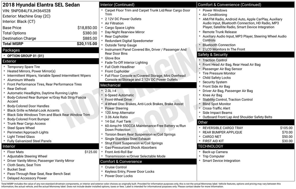 2018 Hyundai Elantra SEL FWD 6-Speed Automatic with Shiftronic 2.0L 4-Cylinder DOHC 16V Machine Gray