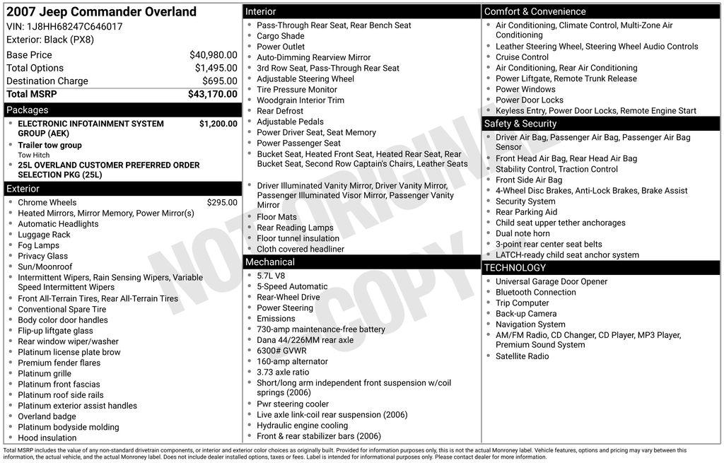 2007 Jeep Commander Overland SUV HEMI V8 Multi Displacement