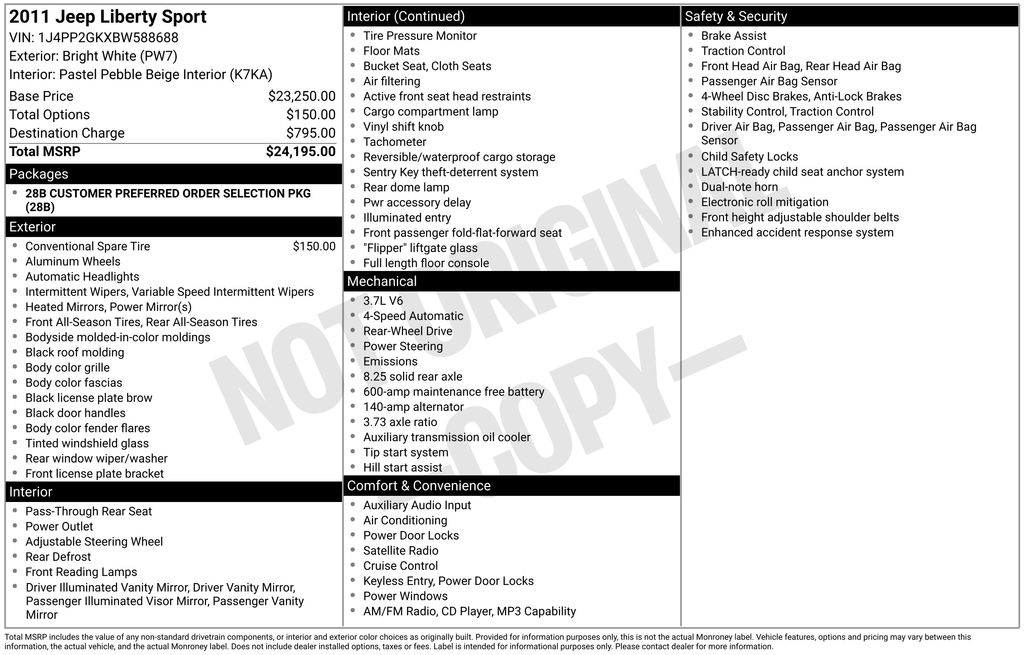 2011 Jeep Liberty Sport RWD 4-Speed Automatic VLP PowerTech 3.7L V6 Bright White Clearcoat