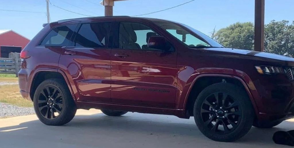 Jeep Grand Cherokee Altitude in maroon with black wheels is a killer combo.That deep maroon (especially Velvet Red Pearl) with the gloss-black accents gives it that perfect mix of luxury and aggression. The Altitude package really sets it off with:Black 20-inch wheels