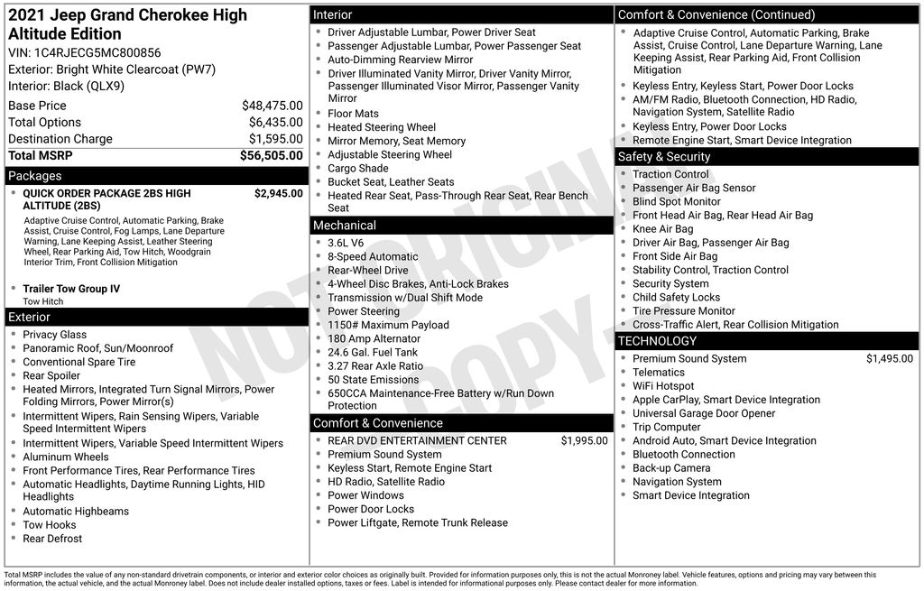 2021 Jeep Grand Cherokee High Altitude SUV V6 24V VVT