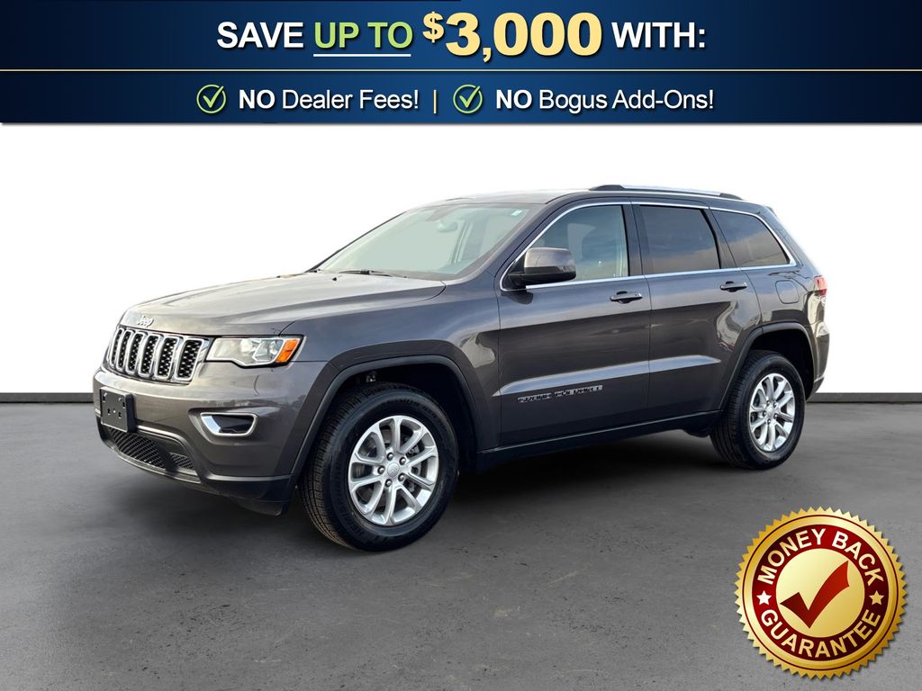 2021 Jeep Grand Cherokee Laredo E Granite Crystal Metallic Clearcoat Laredo E 4WD 8-Speed Automatic 3.6L V6 24V VVT 4WD, 3.45 Rear Axle Ratio, 4-Wheel Disc Brakes, 6 Speakers, ABS brakes, Air Conditioning, Alloy wheels, AM/FM radio: SiriusXM, Anti-whiplash front head restraints, Apple CarPlay, Apple CarPlay/Android Auto, Automatic temperature control, Brake assist, Bumpers: body-color, Cloth Bucket Seats, Compass, Delay-off headlights, Driver door bin, Driver vanity mirror, Dual front impact airbags, Dual front side impact airbags, Electronic Stability Control, Four wheel independent suspension, Front anti-roll bar, Front Bucket Seats, Front Center Armrest w/Storage, Front dual zone A/C, Front fog lights, Front License Plate Bracket, Front reading lights, Fully automatic headlights, Google Android Auto, GPS Antenna Input, Heated door mirrors, Illuminated entry, Integrated Voice Command w/Bluetooth, Knee airbag, Leather Shift Knob, Low tire pressure warning, Normal Duty Suspension, Occupant sensing airbag, Outside temperature display, Overhead airbag, Overhead console, Panic alarm, ParkView Rear Back-Up Camera, Passenger door bin, Passenger vanity mirror, Power door mirrors, Power driver seat, Power steering, Power windows, Quick Order Package 2BE Laredo E, Radio data system, Radio: Uconnect 4 w/7" Display, Rear anti-roll bar, Rear reading lights, Rear seat center armrest, Rear window defroster, Rear window wiper, Remote keyless entry, Roof rack: rails only, Speed control, Speed-sensing steering, Speed-Sensitive Wipers, Split folding rear seat, Spoiler, Steering Wheel Mounted Audio Controls, Steering wheel mounted audio controls, Tachometer, Telescoping steering wheel, Tilt steering wheel, Traction control, Trip computer, Variably intermittent wipers, Wheels: 18" x 8.0" Fine Silver Aluminum, 4WD.