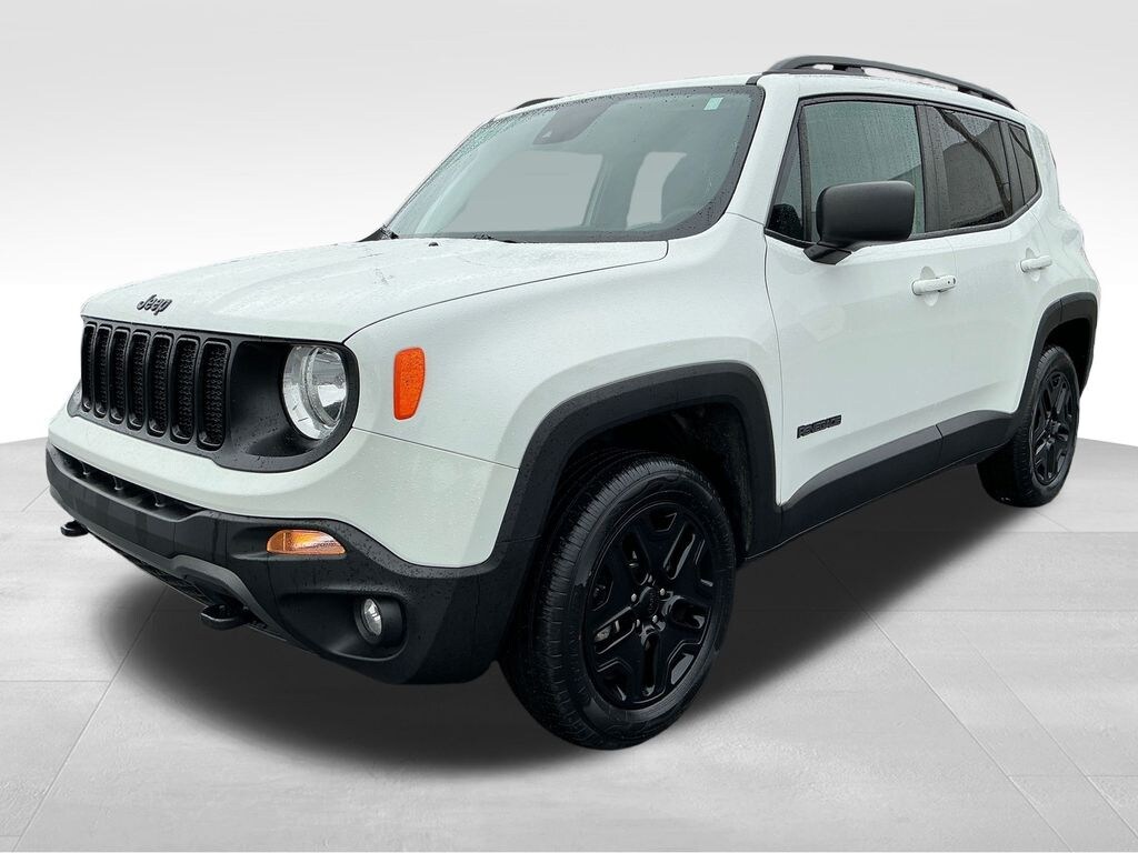 2021 Jeep Renegade Sport Alpine White Clearcoat Sport 4WD 9-Speed 948TE Automatic 2.4L I4 16" x 6.5" Styled Steel Wheels, 2 Front Tow Hooks, 3.734 Final Drive Ratio, 4-Wheel Disc Brakes, 6 Speakers, ABS brakes, Air Conditioning, All-Season Floor Mats, AM/FM radio: SiriusXM, Anti-whiplash front head restraints, Apple CarPlay/Android Auto, Automatic temperature control, Black Side Roof Rails, Body Color Door Handles, Brake assist, Cloth Low-Back Bucket Seats, Compass, Cornering Front Fog Lamps, Deep Tint Sunscreen Glass, Delay-off headlights, Driver door bin, Driver vanity mirror, Dual front impact airbags, Dual front side impact airbags, Electronic Stability Control, Emergency communication system: SiriusXM Guardian, Four wheel independent suspension, Front anti-roll bar, Front Bucket Seats, Front Center Armrest, Front dual zone A/C, Front reading lights, Heated door mirrors, Illuminated entry, Keyless Entry w/Panic Alarm, Knee airbag, Low tire pressure warning, Normal Duty Suspension, Occupant sensing airbag, Outside temperature display, Overhead airbag, Panic alarm, ParkView Rear Back-Up Camera, Passenger door bin, Passenger vanity mirror, Power door mirrors, Power steering, Power windows, Quick Order Package 2XN Upland Edition (DISC), Radio data system, Radio: Uconnect 4 w/7" Display, Rear anti-roll bar, Rear window defroster, Rear window wiper, Remote keyless entry, Remote Start System, Speed control, Split folding rear seat, Spoiler, Steering wheel mounted audio controls, Tachometer, Tangerine Interior Accents, Telescoping steering wheel, Tilt steering wheel, Traction control, Trip computer, Upland Edition, Variably intermittent wipers, Voltmeter, Wheels: 17" x 6.5" Aluminum (DISC).